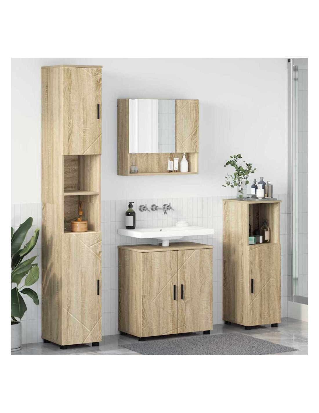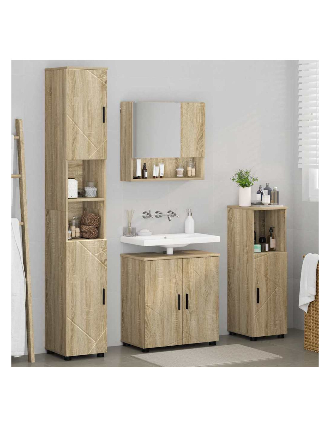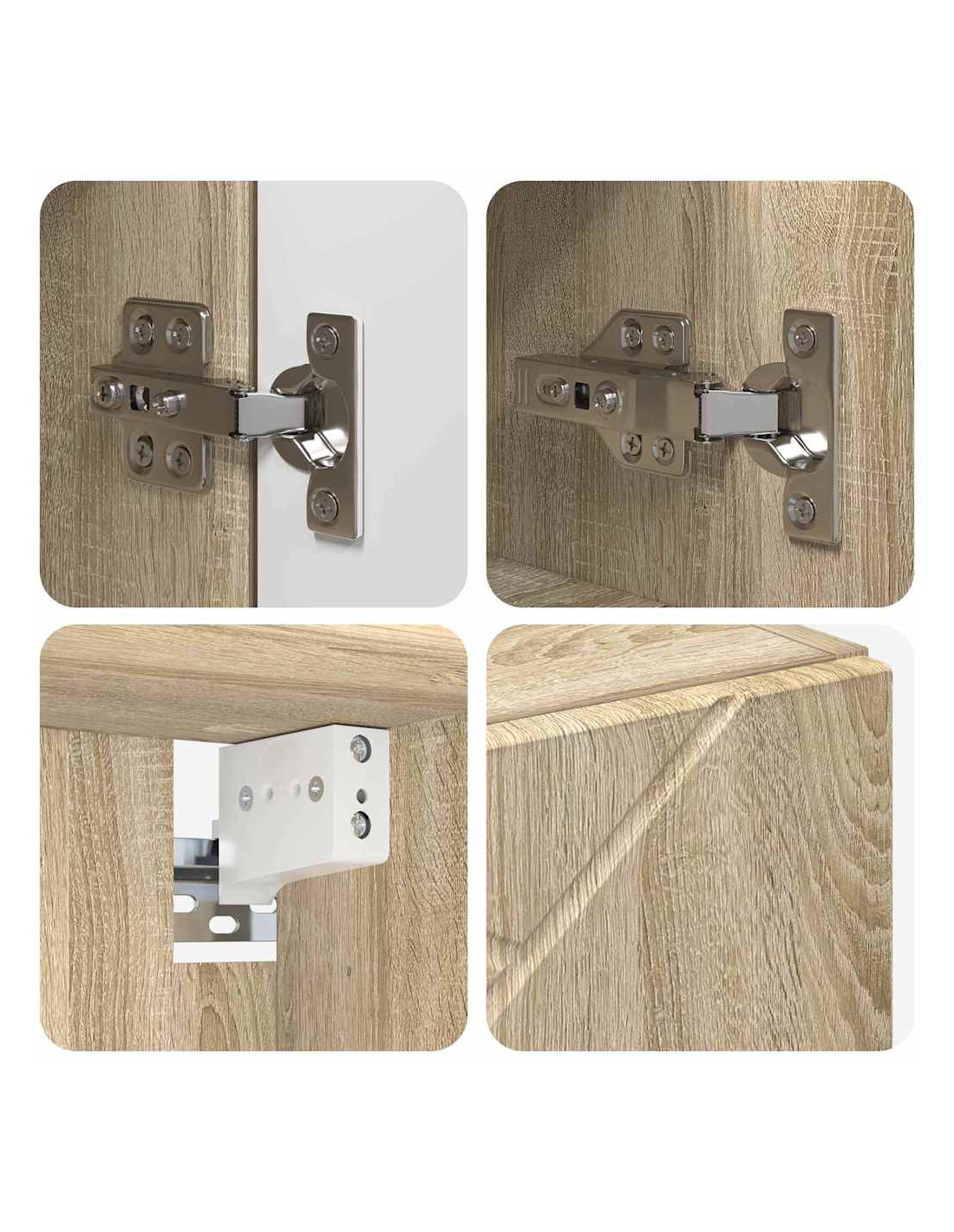 - Componenti inclusi: Il set contiene un armadietto per lavabo, un armadietto a specchio da parete e altri due armadietti da bagno. Ogni pezzo è progettato per sfruttare al massimo lo spazio di archiviazione, mantenendo un'aspetto ordinato.