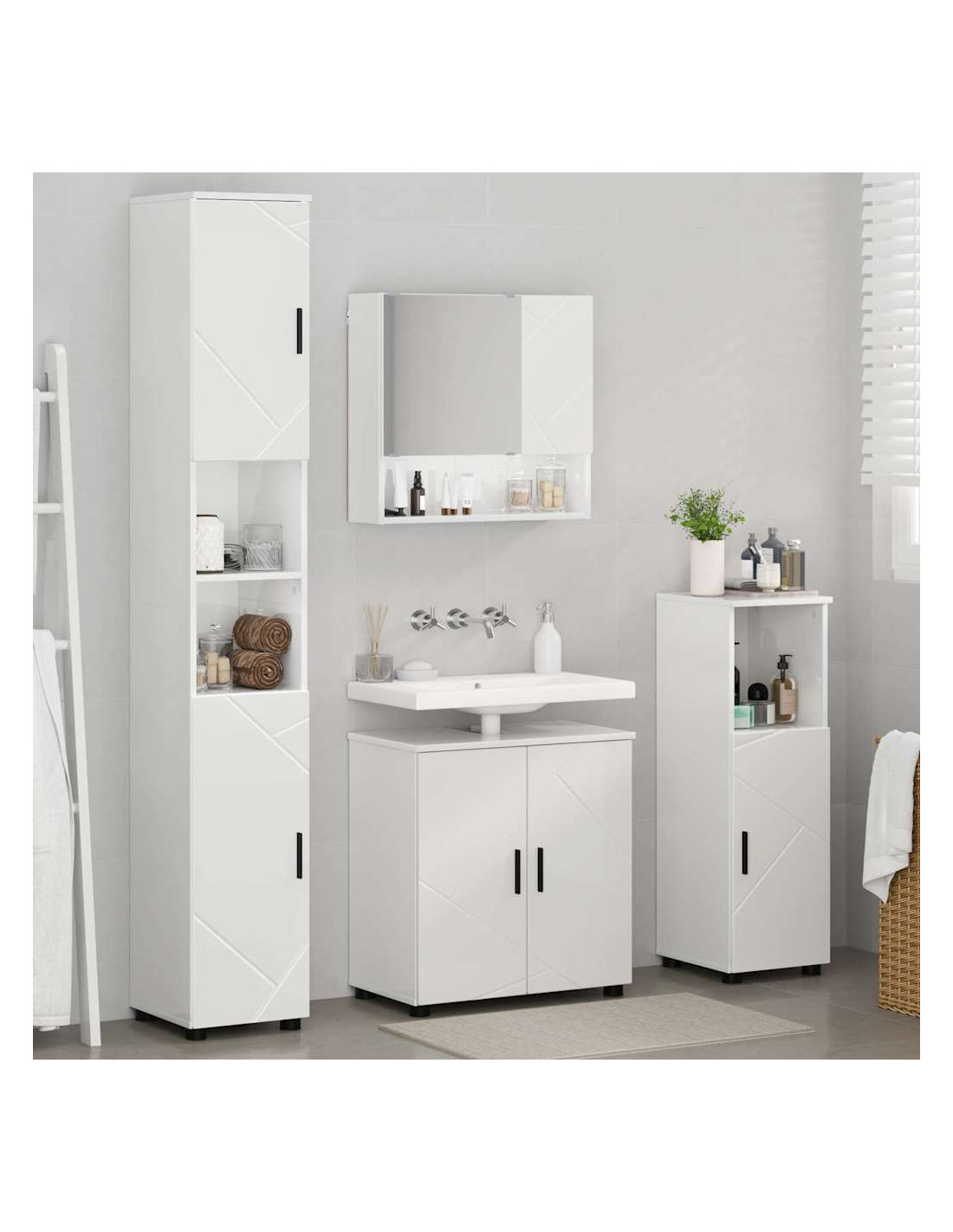 Il set di mobili per il bagno moderno è fatto per adattarsi benissimo a spazi contemporanei. Con un armadietto a specchio a parete e armadietti da bagno, è sia elegante che funzionale per le tue necessità. La forma rettangolare e le linee pulite fanno sembrare il bagno più grande, e offrono tanto spazio per tutti i tuoi articoli da bagno.