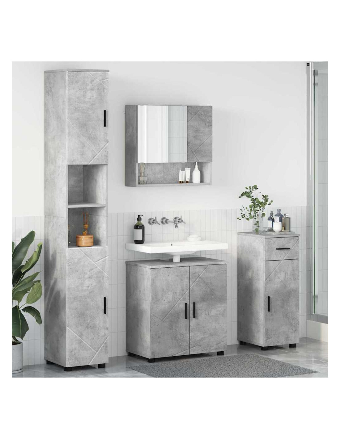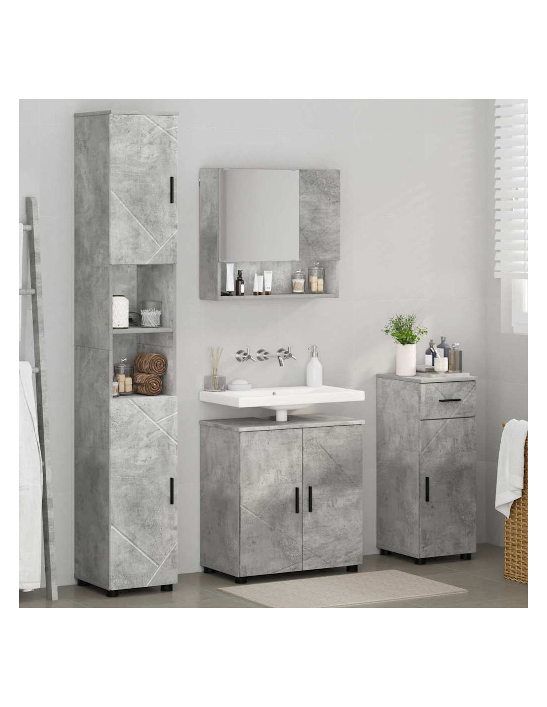 - Costruzione in legno ingegnerizzato: Questo set di mobili è fatto principalmente in legno ingegnerizzato, una scelta robusta ed eco-friendly per i bagni. La sua struttura resiste bene all'umidità, perfetto per le tue esigenze in bagno.