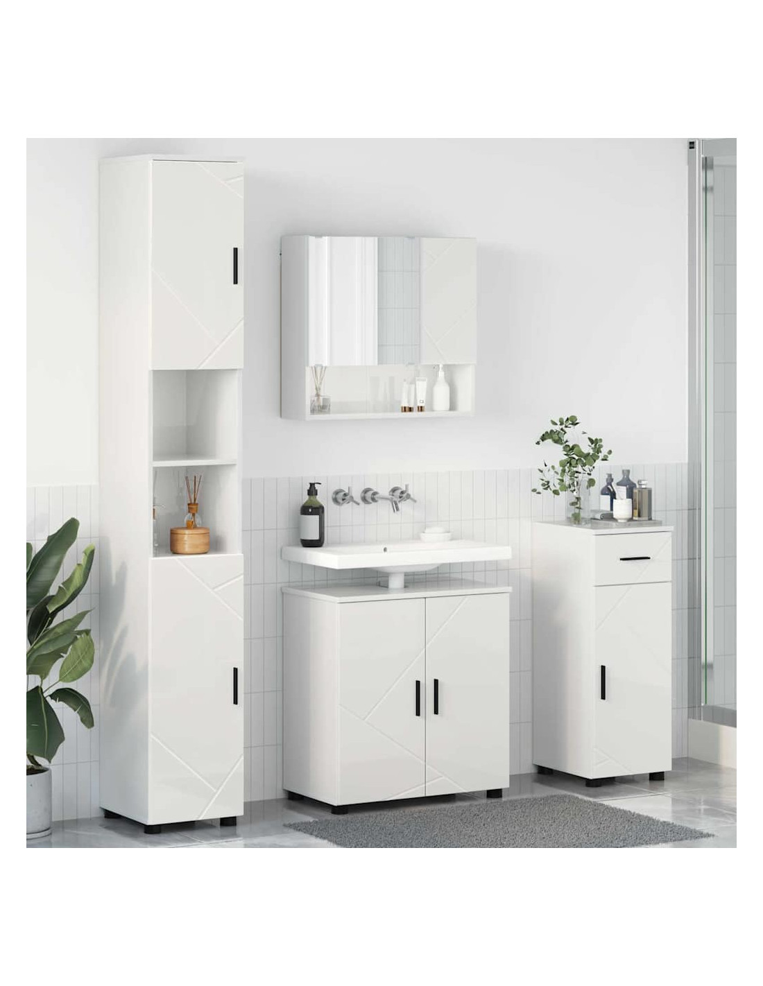 - Costruzione in legno ingegnerizzato: Questo set di mobili è fatto principalmente in legno ingegnerizzato, una scelta robusta ed eco-friendly per i bagni. La sua struttura resiste bene all'umidità, perfetto per le tue esigenze in bagno.