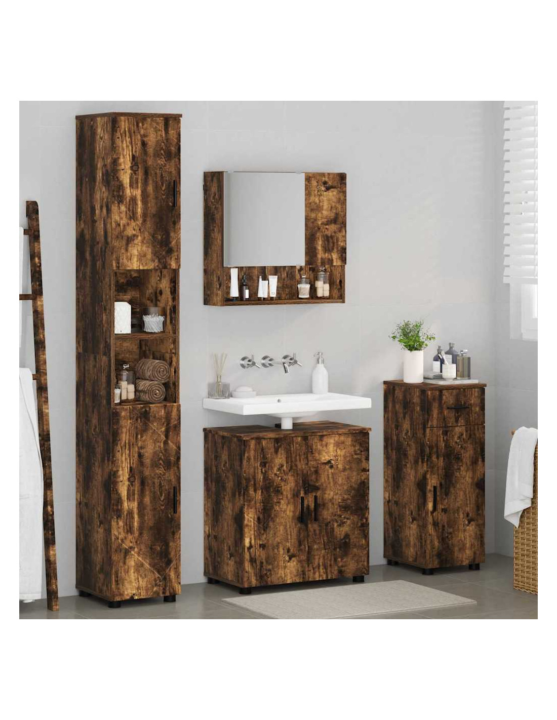 - Costruzione in legno ingegnerizzato: Questo set di mobili è fatto principalmente in legno ingegnerizzato, una scelta robusta ed eco-friendly per i bagni. La sua struttura resiste bene all'umidità, perfetto per le tue esigenze in bagno.