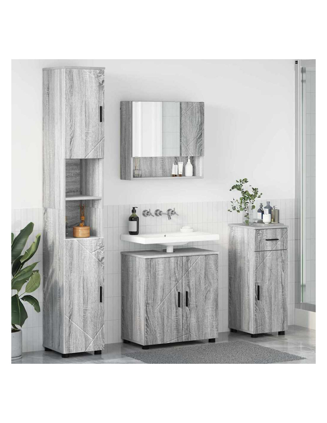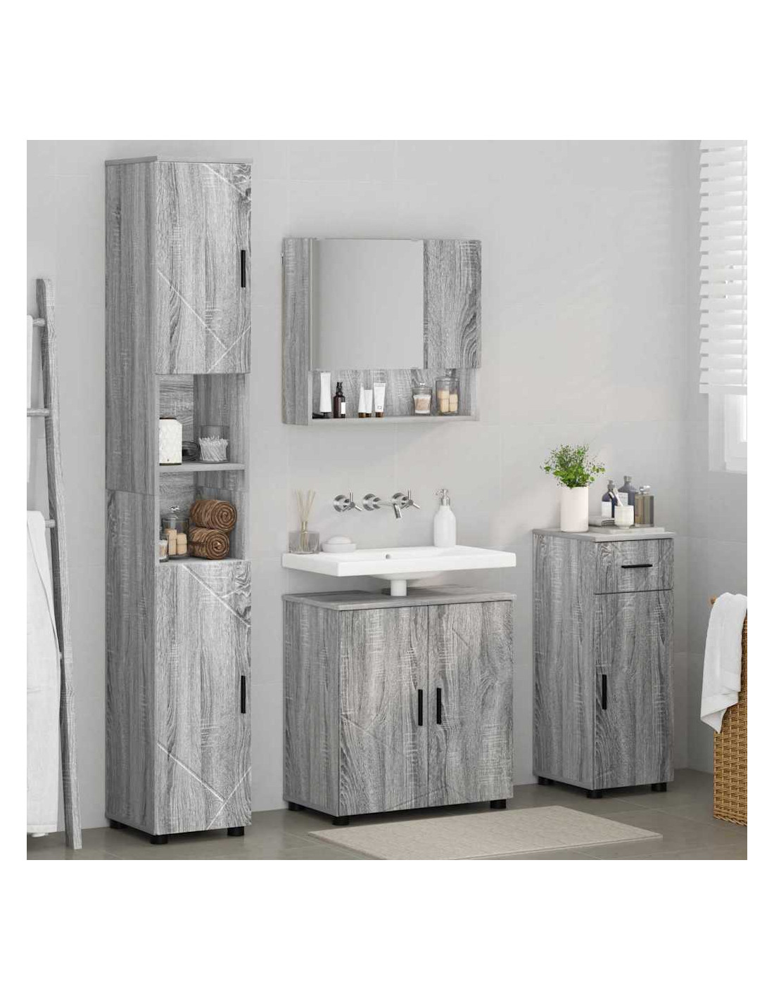 - Costruzione in legno ingegnerizzato: Questo set di mobili è fatto principalmente in legno ingegnerizzato, una scelta robusta ed eco-friendly per i bagni. La sua struttura resiste bene all'umidità, perfetto per le tue esigenze in bagno.