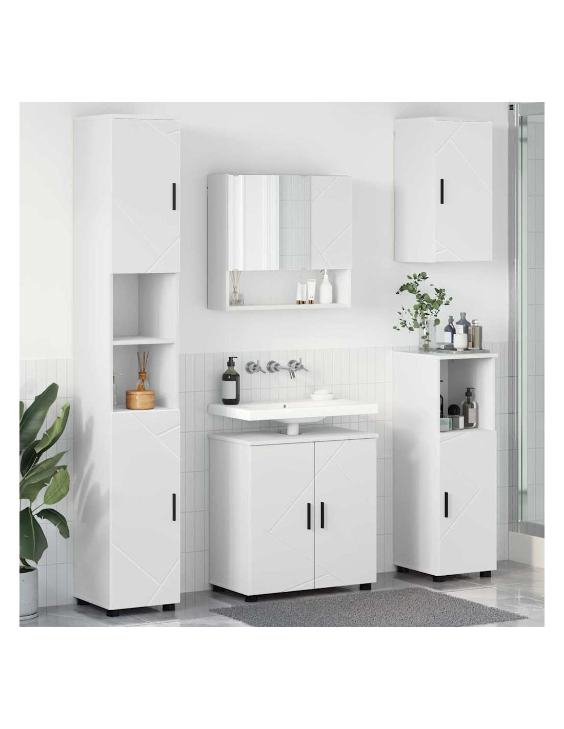Questo Set di Mobili da Bagno Moderno è perfetto per mescolare stile e praticità. Ha un look minimalista con linee pulite e un aspetto trendy, ideale per qualsiasi bagno moderno. Il set include armadietti a specchio montati a parete che offrono tanto spazio di stoccaggio mantenendo un look elegante.