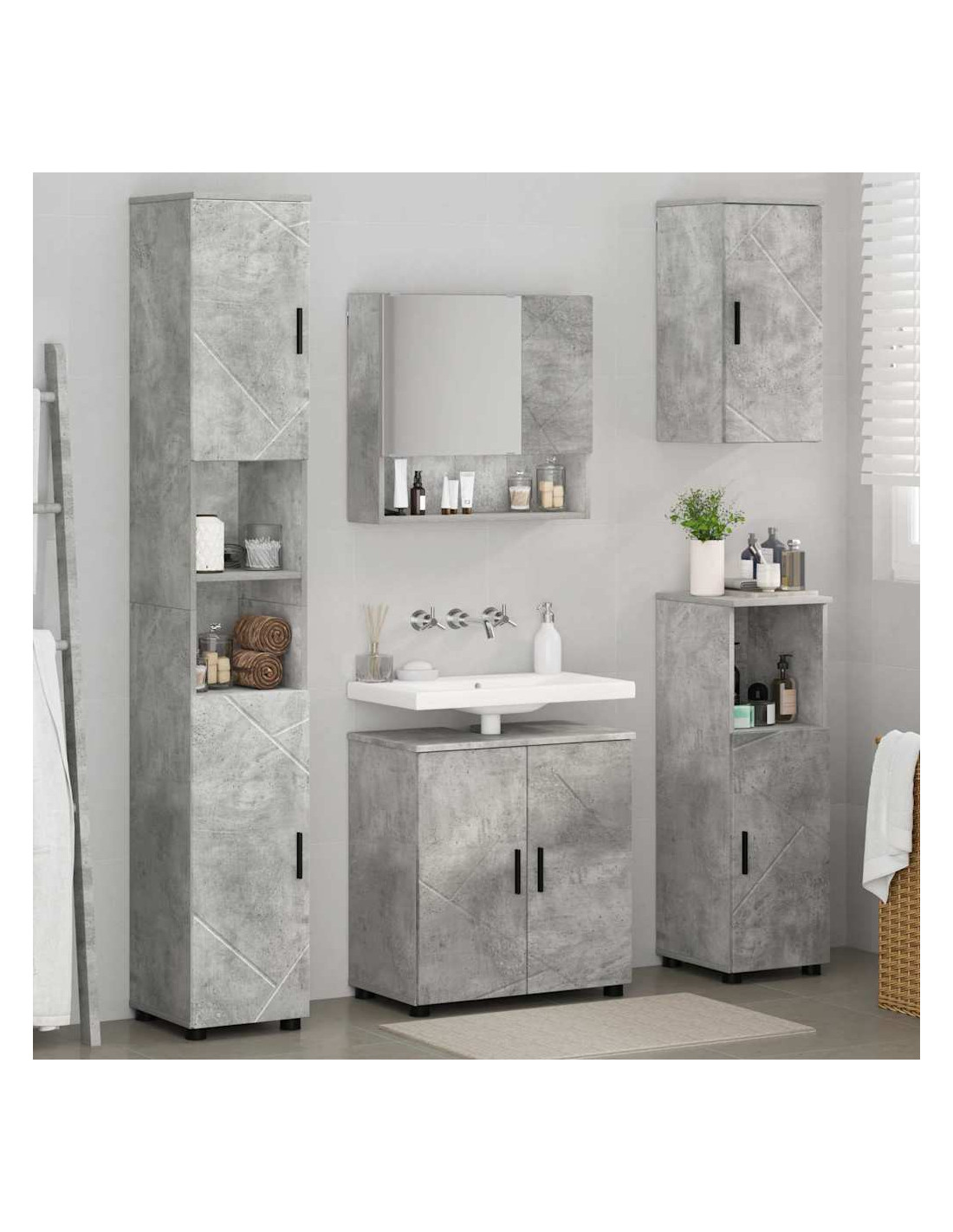 - Montaggio a Parete Salva Spazio Montato a parete, questo set libera spazio prezioso sul pavimento. È semplice da installare e offre un ottimo spazio di stoccaggio, adatto per bagni più piccoli o per chi vuole un look ordinato.
