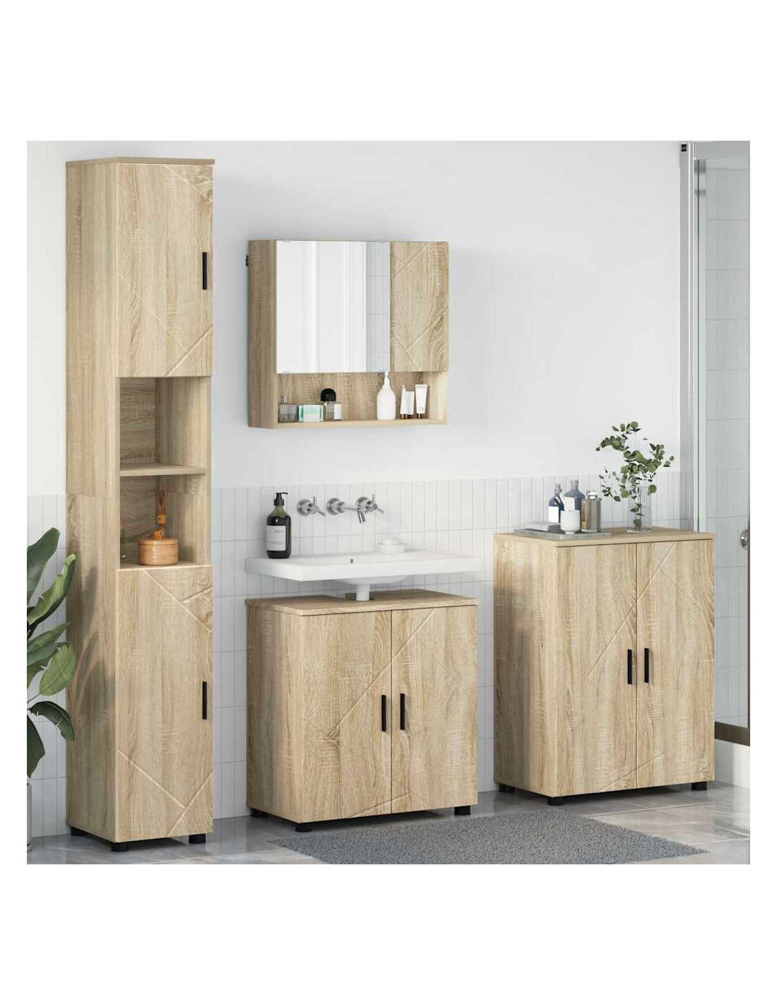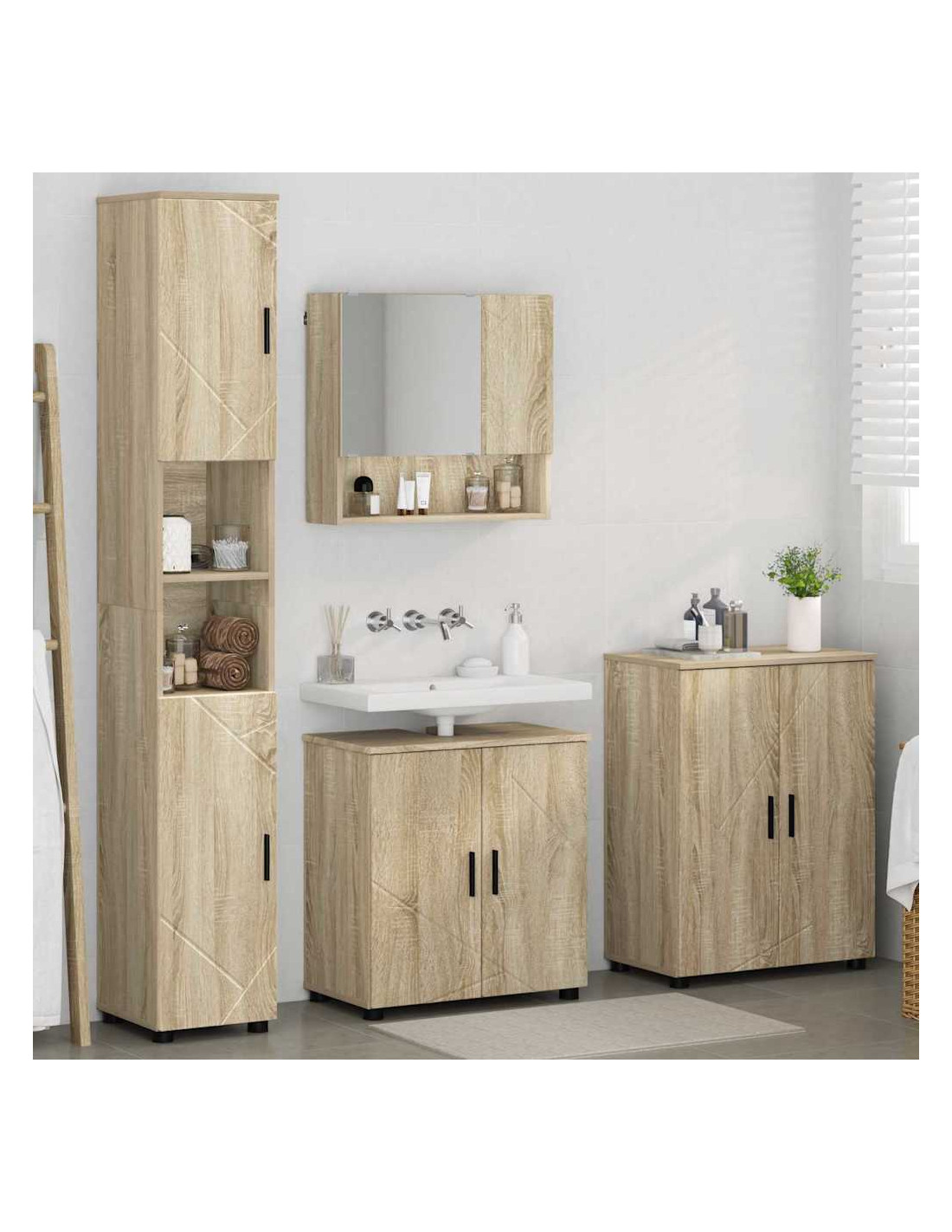 - Qualità Costruttiva: Realizzato in legno ingegnerizzato, noto per la sua resistenza, questo set è un'aggiunta fidata al tuo bagno. È resistente all'usura e manterrà il suo aspetto a lungo.