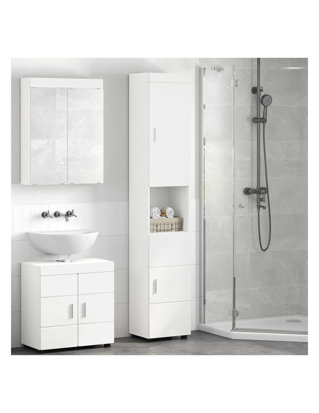 Il mobiletto per il bagno è una soluzione elegante e comoda per qualsiasi bagno. Unisce praticità a un design accattivante, rendendolo perfetto per un bagno ben organizzato e bello da vedere. Il legno ingegnerizzato gli dà un aspetto figo ed è anche resistente, ideale per chi cerca qualità e stile insieme. Il suo design semplice si sposa bene con qualsiasi schema di colori, adattandosi facilmente a vari stili di bagno.