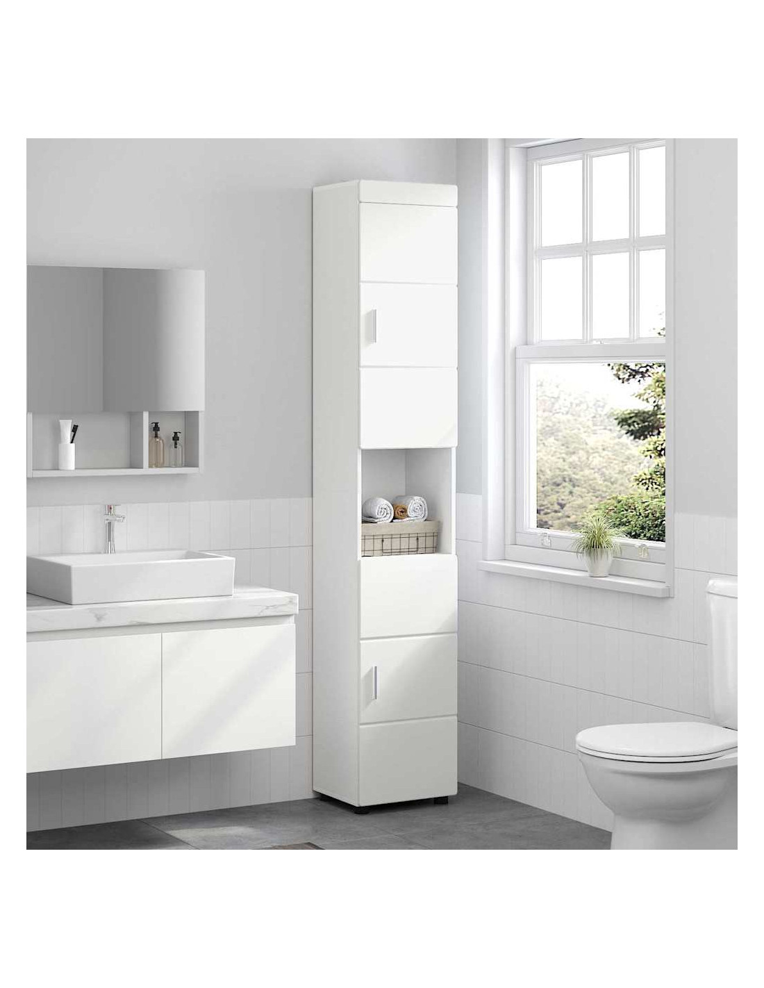 - Spazio di Archiviazione Funzionale Con molti compartimenti, questo mobile ti aiuta a tenere tutto in ordine. Più ripiani significa che i tuoi prodotti per la cura, asciugamani e articoli essenziali sono ben organizzati e lo spazio resta libero. Trovi facilmente ciò che ti serve.