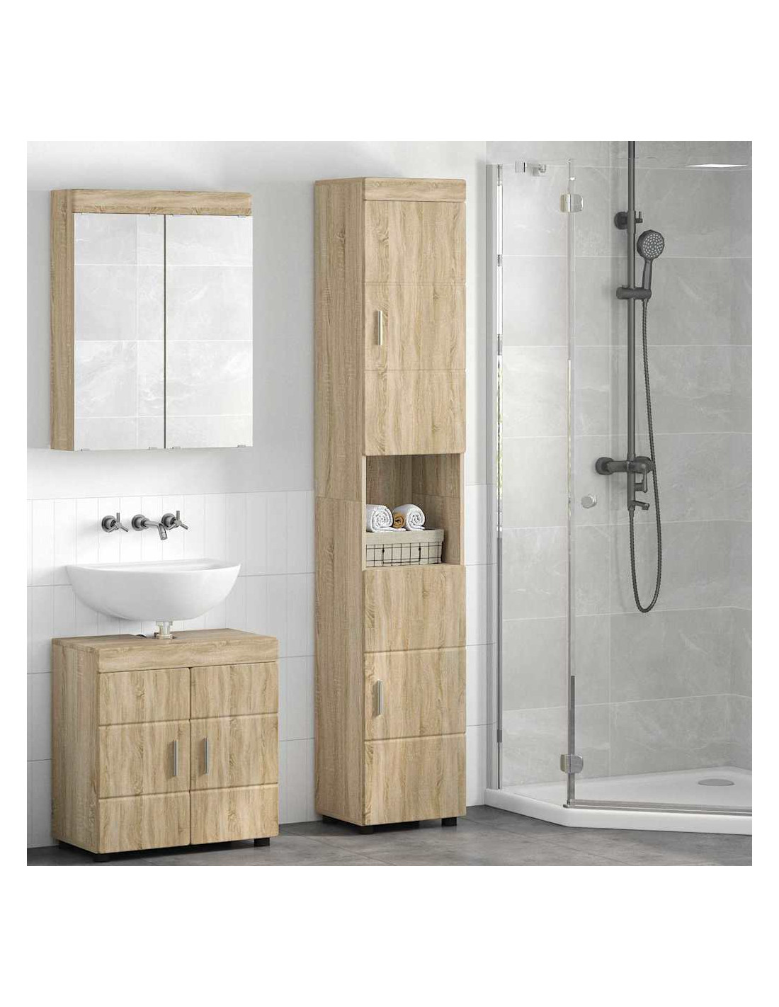 Il mobiletto per il bagno è una soluzione elegante e comoda per qualsiasi bagno. Unisce praticità a un design accattivante, rendendolo perfetto per un bagno ben organizzato e bello da vedere. Il legno ingegnerizzato gli dà un aspetto figo ed è anche resistente, ideale per chi cerca qualità e stile insieme. Il suo design semplice si sposa bene con qualsiasi schema di colori, adattandosi facilmente a vari stili di bagno.
