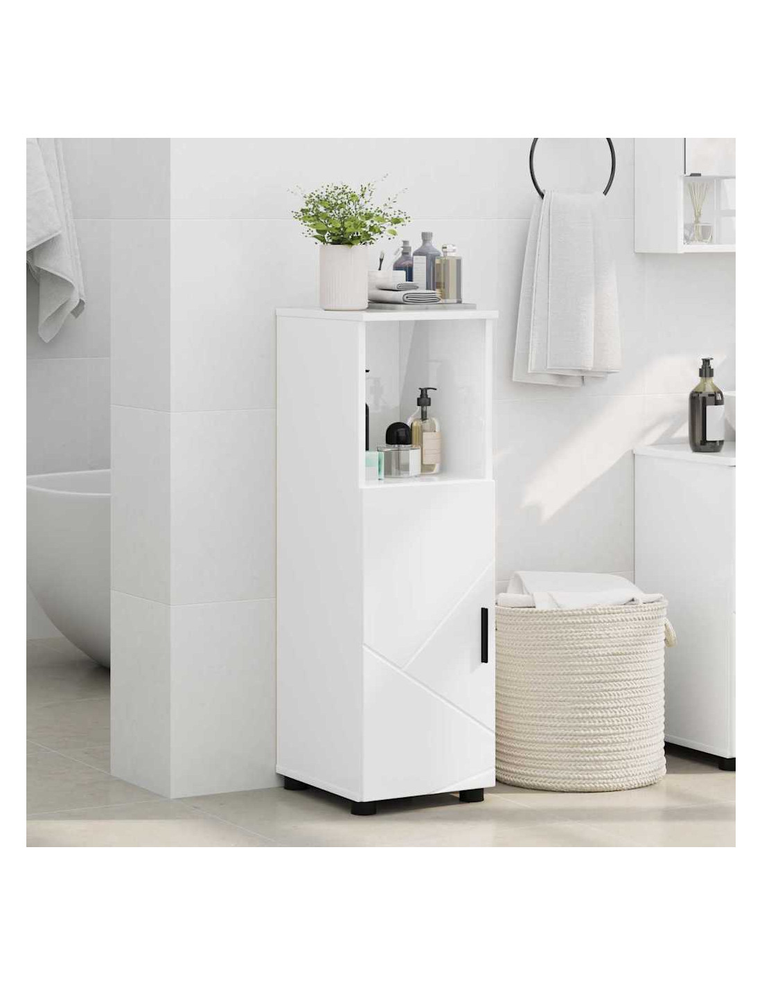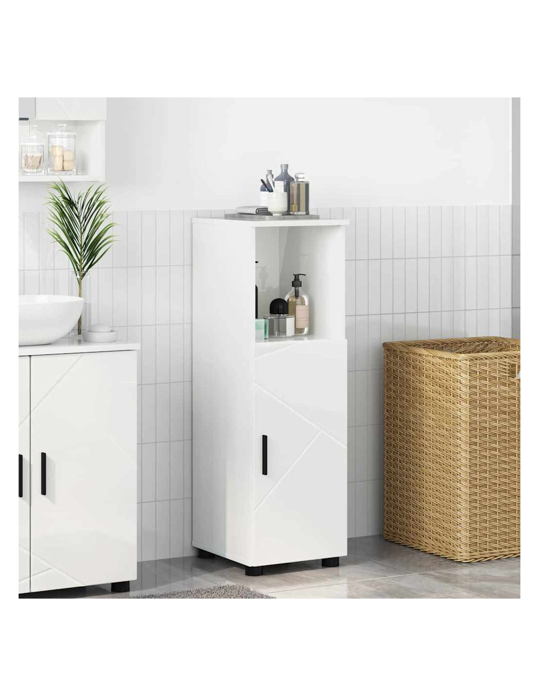 Questo armadietto da bagno indipendente è una soluzione di stoccaggio pratica e versatile, unendo design moderno e funzionalità. Realizzato in legno ingegnerizzato, ha una forma rettangolare elegante che si integra perfettamente in ogni tipo di bagno. Se stai cercando di ottimizzare lo spazio senza rinunciare allo stile, questo armadietto è il mix perfetto di eleganza e praticità.