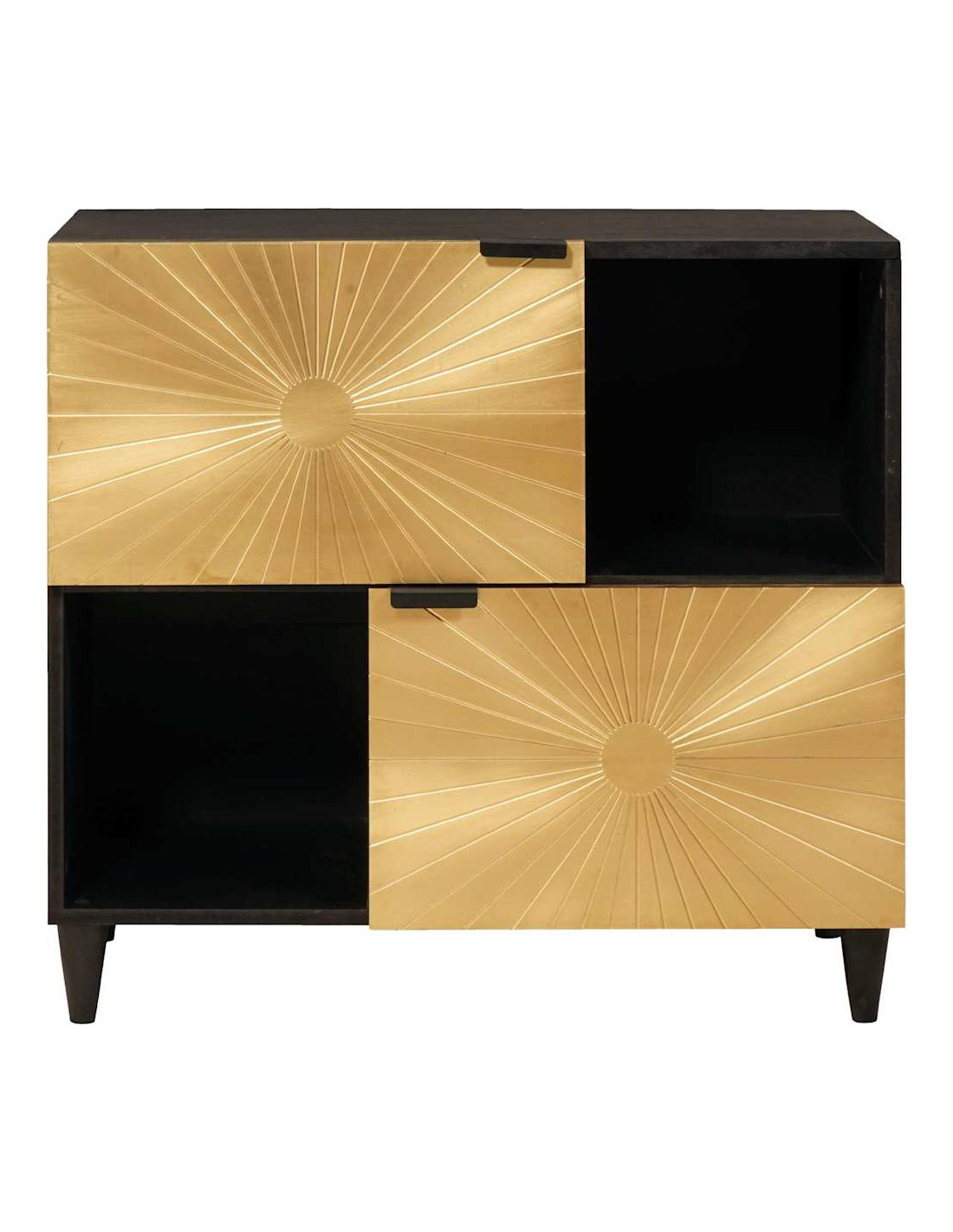- Design Elegante Con una superficie liscia e dettagli neri e oro, questo mobiletto aggiunge un tocco di eleganza a qualsiasi soggiorno. Il look moderno si integra perfettamente con gli arredi contemporanei, migliorando l'atmosfera generale.