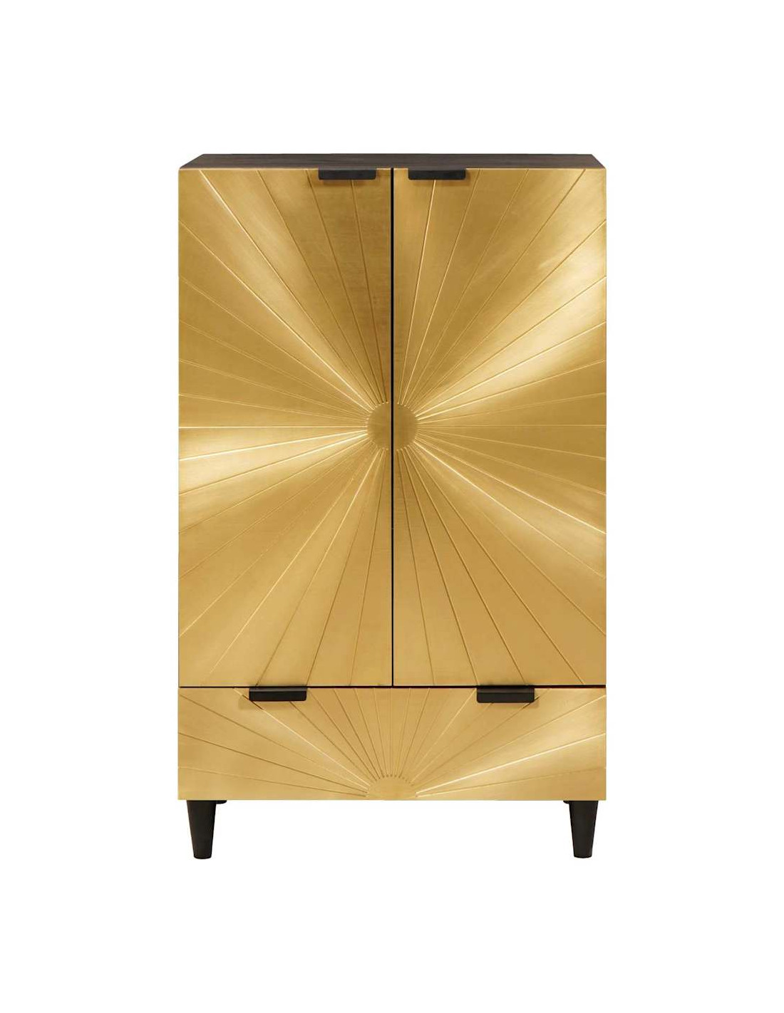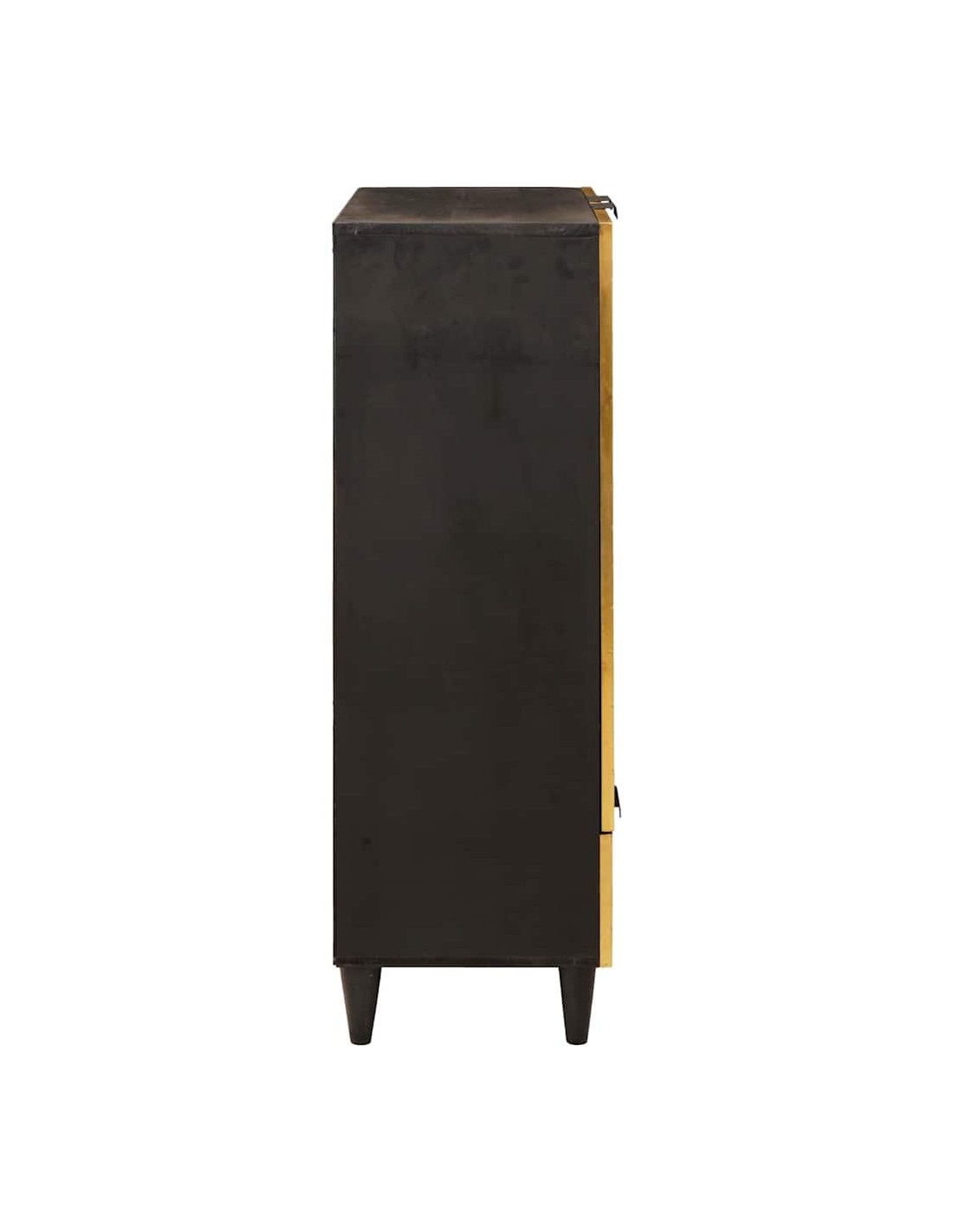 - Componenti Inclusi: Questo armadietto ha porte a filo per una superficie liscia e maniglie a barra che aggiungono stile. Le maniglie dorate spiccano sulla superficie nera, accentuando la sua modernità.