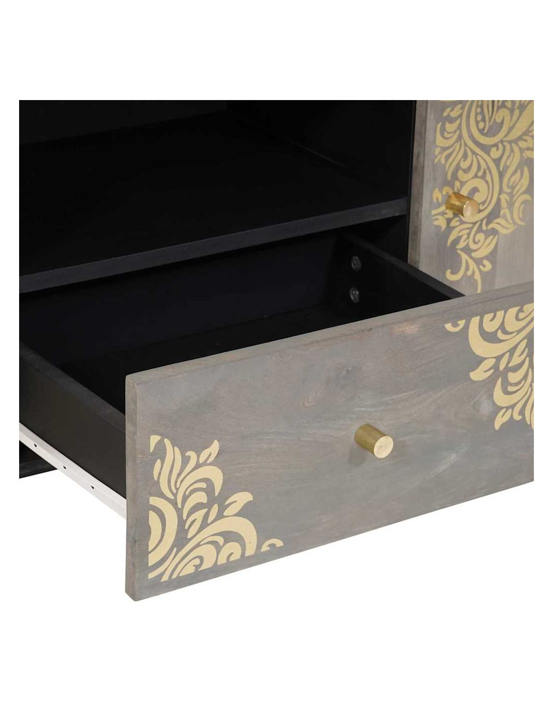 - Design Funzionale di Stoccaggio: Ha cassetti e scomparti spaziosi, offrendoti tanto spazio per sistemare gli oggetti essenziali del soggiorno. I cassetti e le porte scorrevoli rendono facile prendere quello che ti serve, migliorando la funzionalità del pezzo.