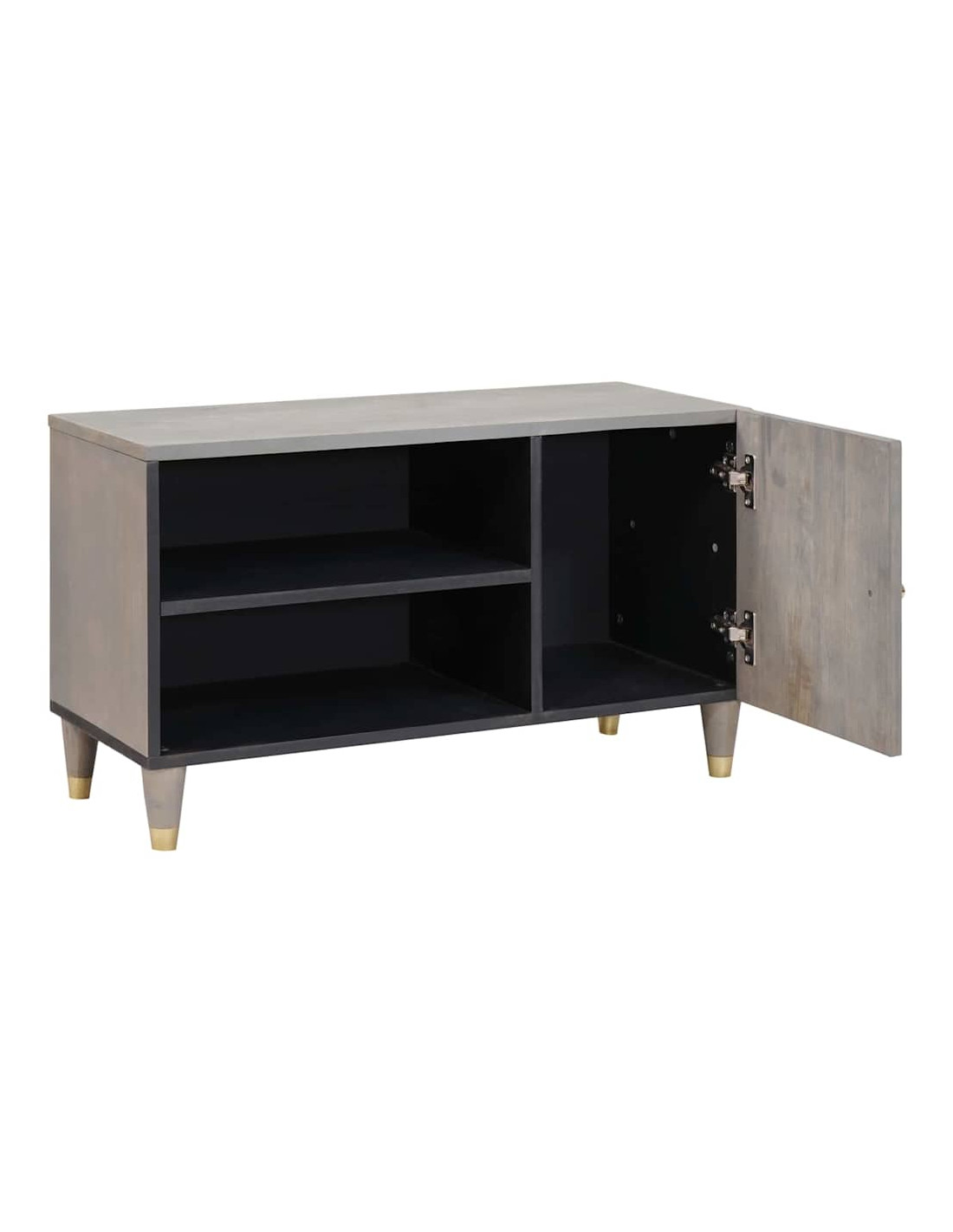 Questo mobile TV è quello che serve per unire stile e praticità, perfetto per il tuo soggiorno con un tocco moderno. Fatto in legno massello di mango, ha una forma rettangolare con una finitura texturata che dà un ingresso raffinato e semplice, rendendolo un'ottima aggiunta a ogni spazio moderno.