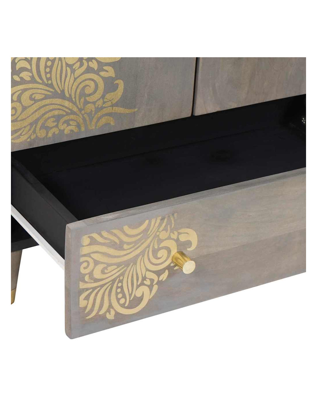 - Legno Massello di Mango Premium: Senti la robustezza e il fascino del nostro highboard in legno massello di mango. Questo materiale porta una calda luminosità nel tuo spazio e dura a lungo, tenendo al sicuro le tue cose. Con questo legno di qualità, hai forza e un design senza tempo che brilla in qualsiasi stanza.