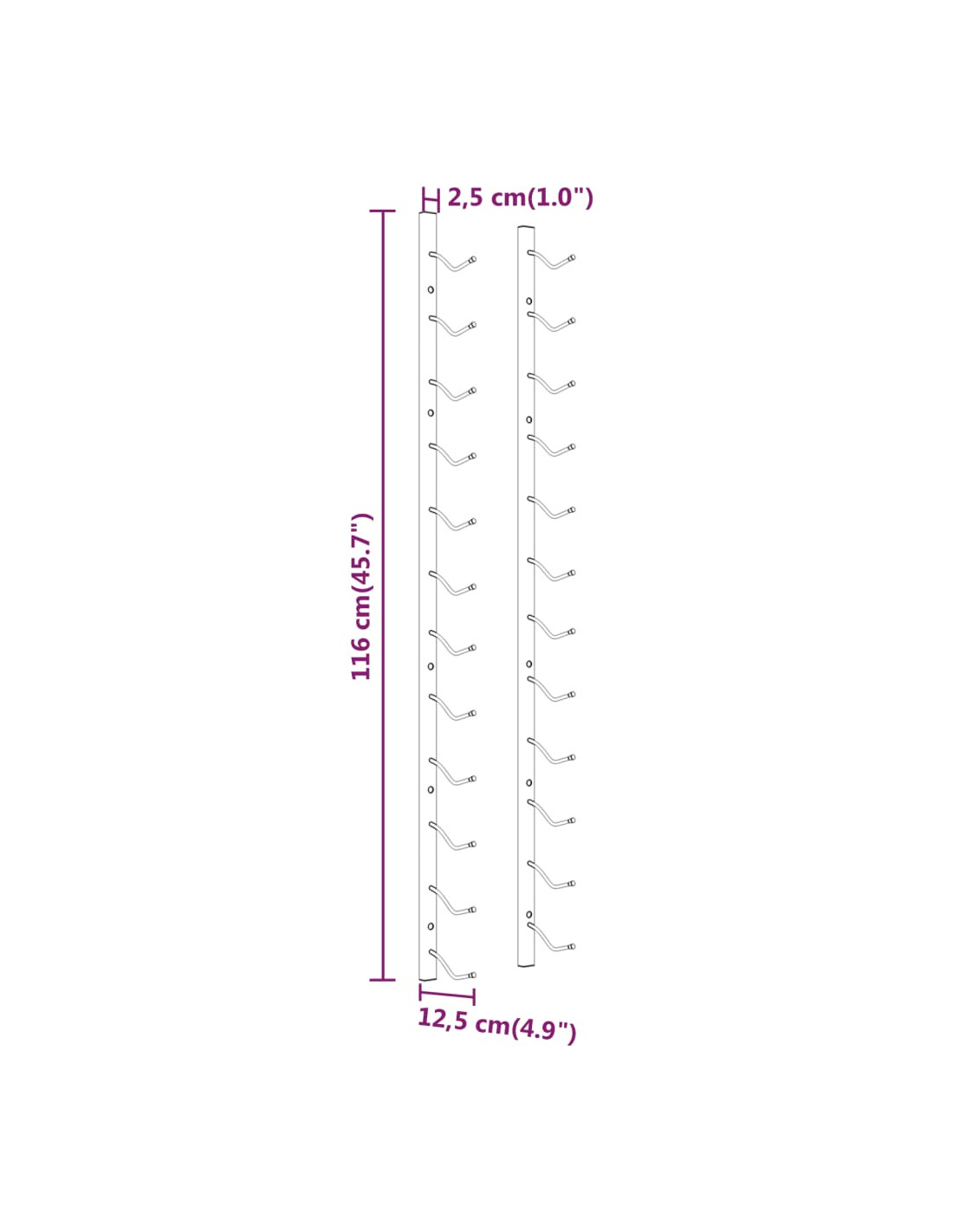 - Dimensioni: 12,5 x 2,5 x 116 cm (L x P x A)