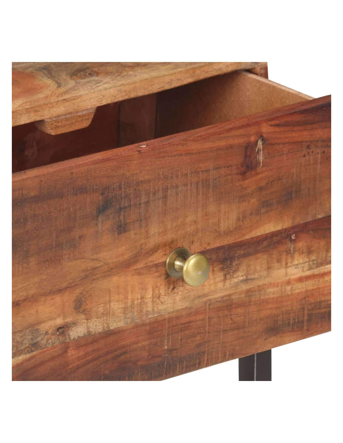 Questo tavolino da divano è realizzato in legno massello di acacia grezzo, che lo rende solido e stabile. La lavorazione artigianale e le bellissime venature del legno rendono ogni mobile unico e leggermente diverso dagli altri. Il comodino è dotato di 1 cassetto, che offre ampio spazio per tenere ben organizzati gli oggetti che desiderate. Inoltre, la base in ferro si aggiunge alla sua robustezza.