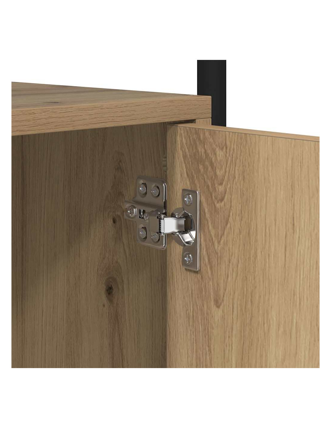 - Porte a cerniera con maniglie: Presenta porte a cerniera in legno ingegnerizzato con manopole nere opache, per un'apertura semplice e funzionale. Questi dettagli garantiscono accesso facile a quello che c'è dentro, mantenendo un aspetto elegante.