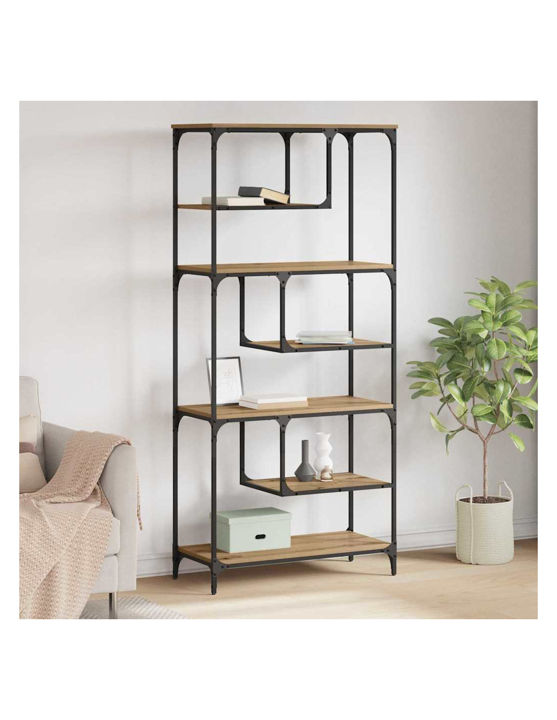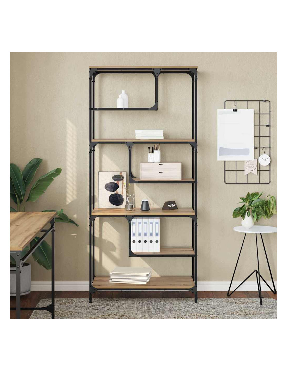 - Composizione dei materiali: Realizzata in legno ingegnerizzato, questa libreria è un ottimo mix con la sua solida struttura in metallo, offrendoti un bel posto per riporre libri e decorazioni. I materiali scelti assicurano durabilità e bellezza, rendendola un pezzo affidabile che aggiunge un tocco rustico e industriale alla tua casa.