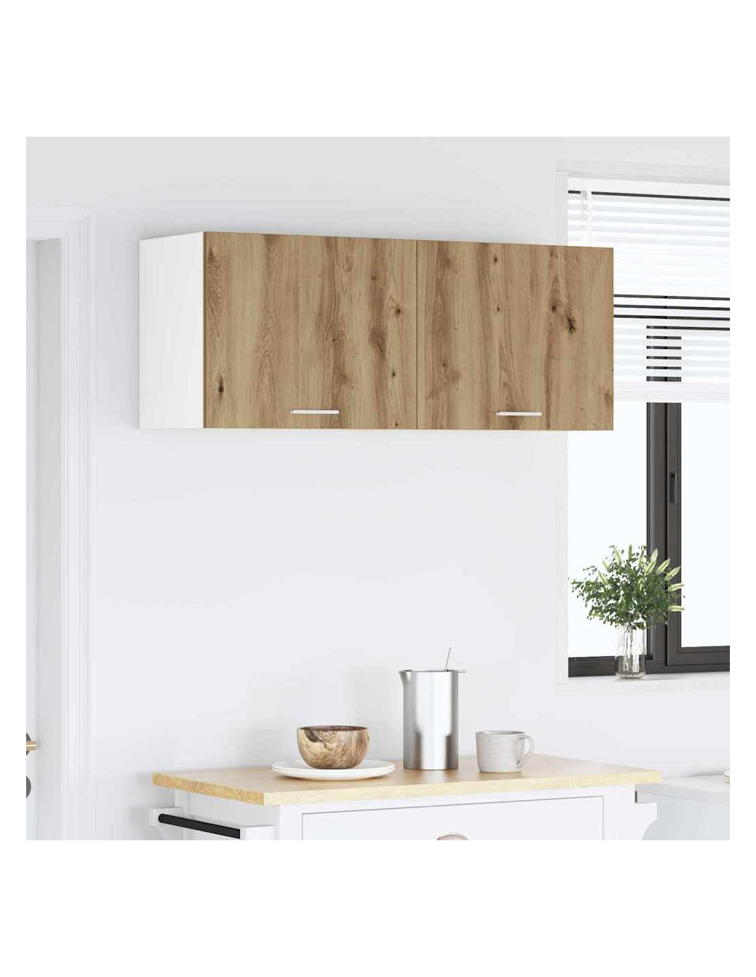 - Caratteristiche: Il design a parete aiuta a risparmiare spazio, mentre la robustezza del legno ingegnerizzato garantisce durata. È una combinazione di stile e praticità, perfetto per cucine moderne.