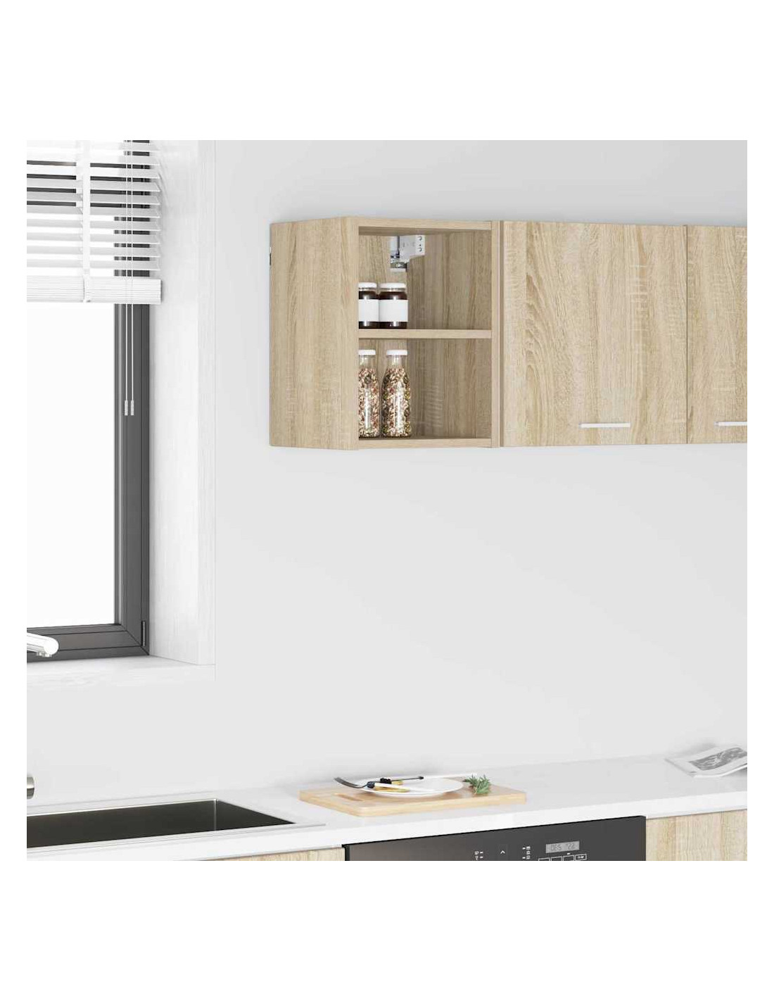- Caratteristiche: Il design a parete aiuta a risparmiare spazio, mentre la robustezza del legno ingegnerizzato garantisce durata. È una combinazione di stile e praticità, perfetto per cucine moderne.