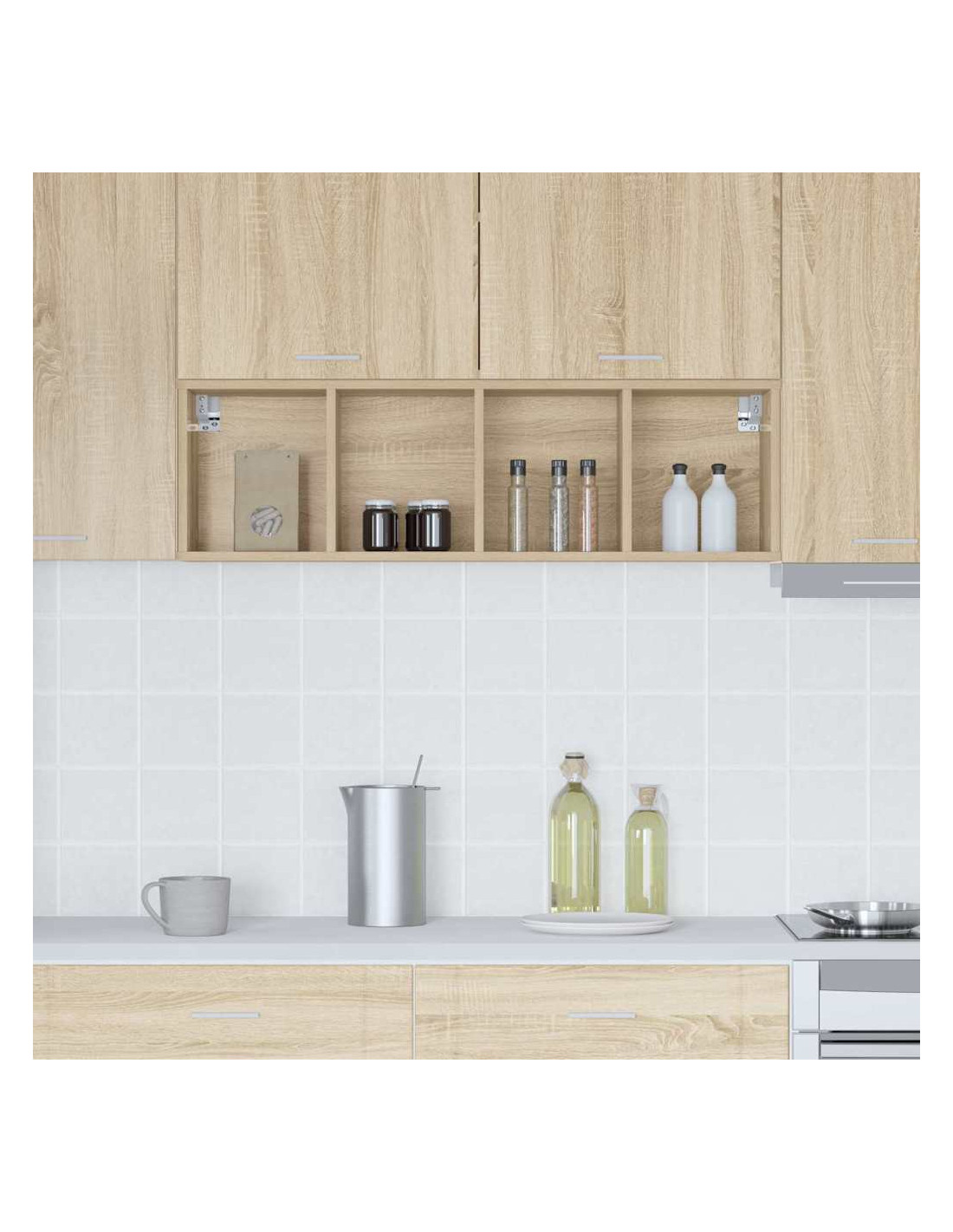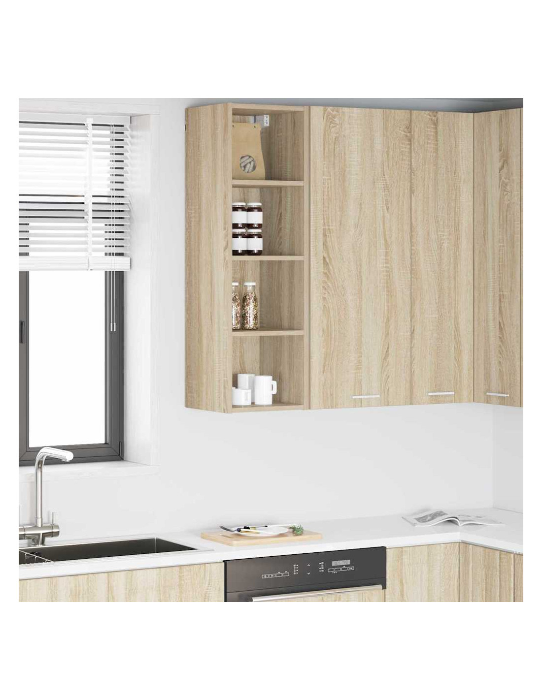 - Componenti inclusi: Con pannelli posteriori rifiniti e ripiani solidi, questo armadietto a parete è progettato per ottimizzare l'organizzazione e lo stoccaggio in cucina.
