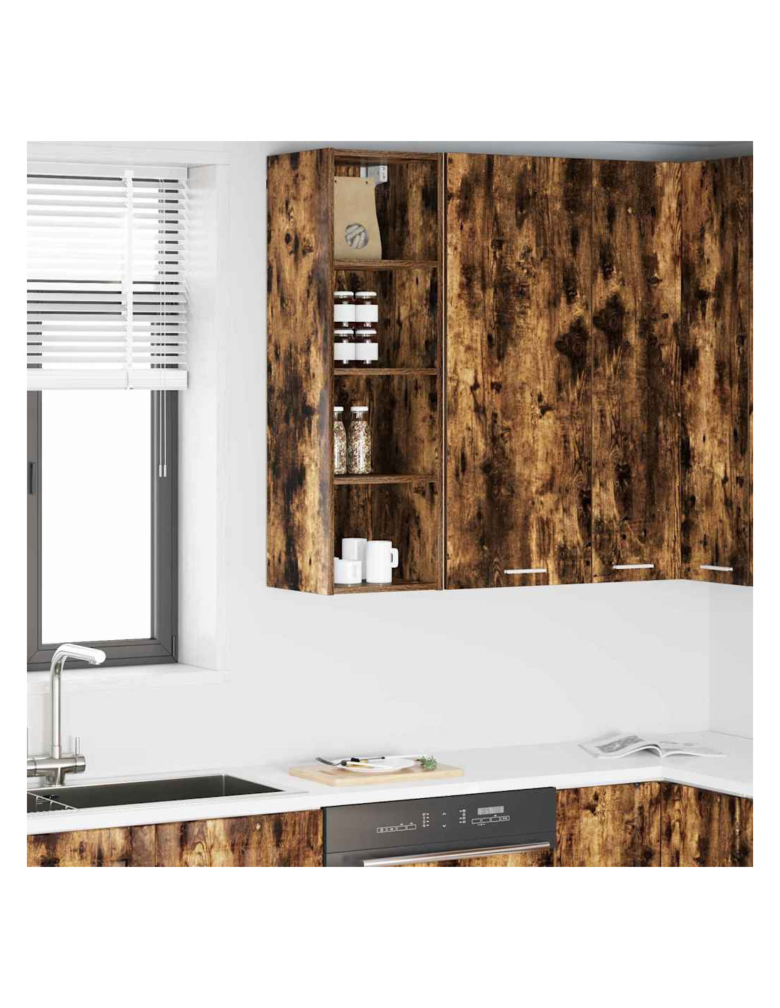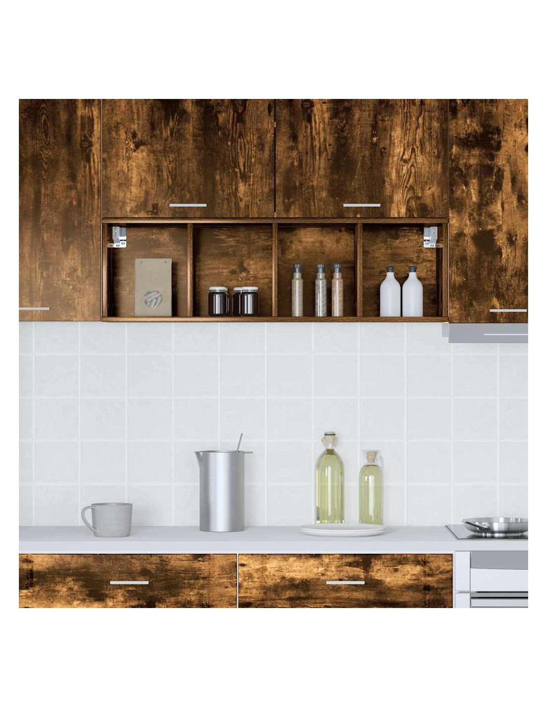 - Componenti inclusi: Con pannelli posteriori rifiniti e ripiani solidi, questo armadietto a parete è progettato per ottimizzare l'organizzazione e lo stoccaggio in cucina.