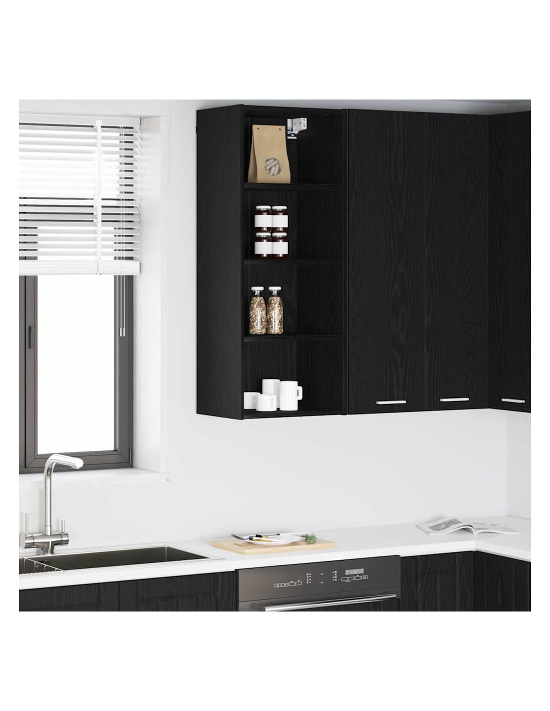- Componenti inclusi: Con pannelli posteriori rifiniti e ripiani solidi, questo armadietto a parete è progettato per ottimizzare l'organizzazione e lo stoccaggio in cucina.