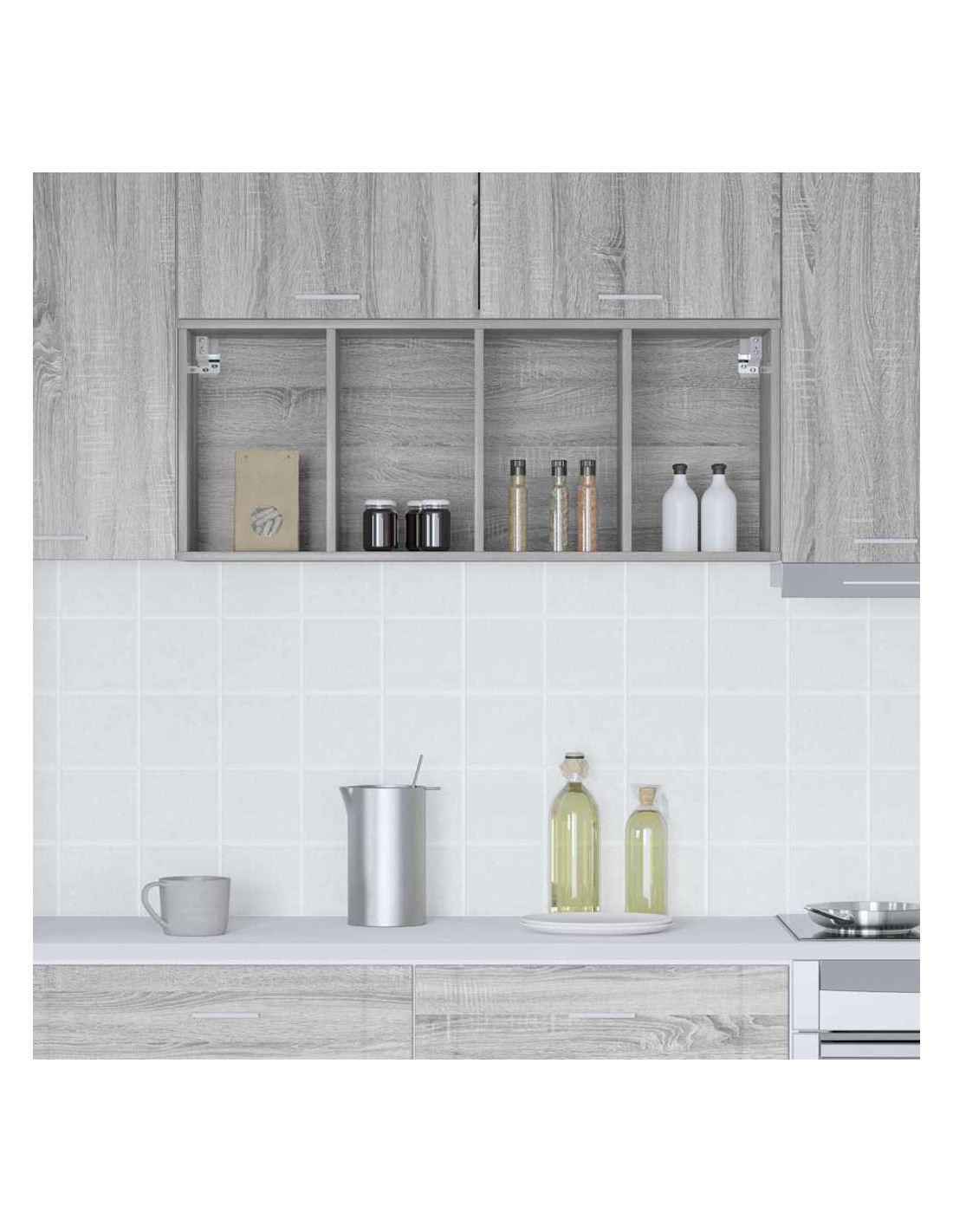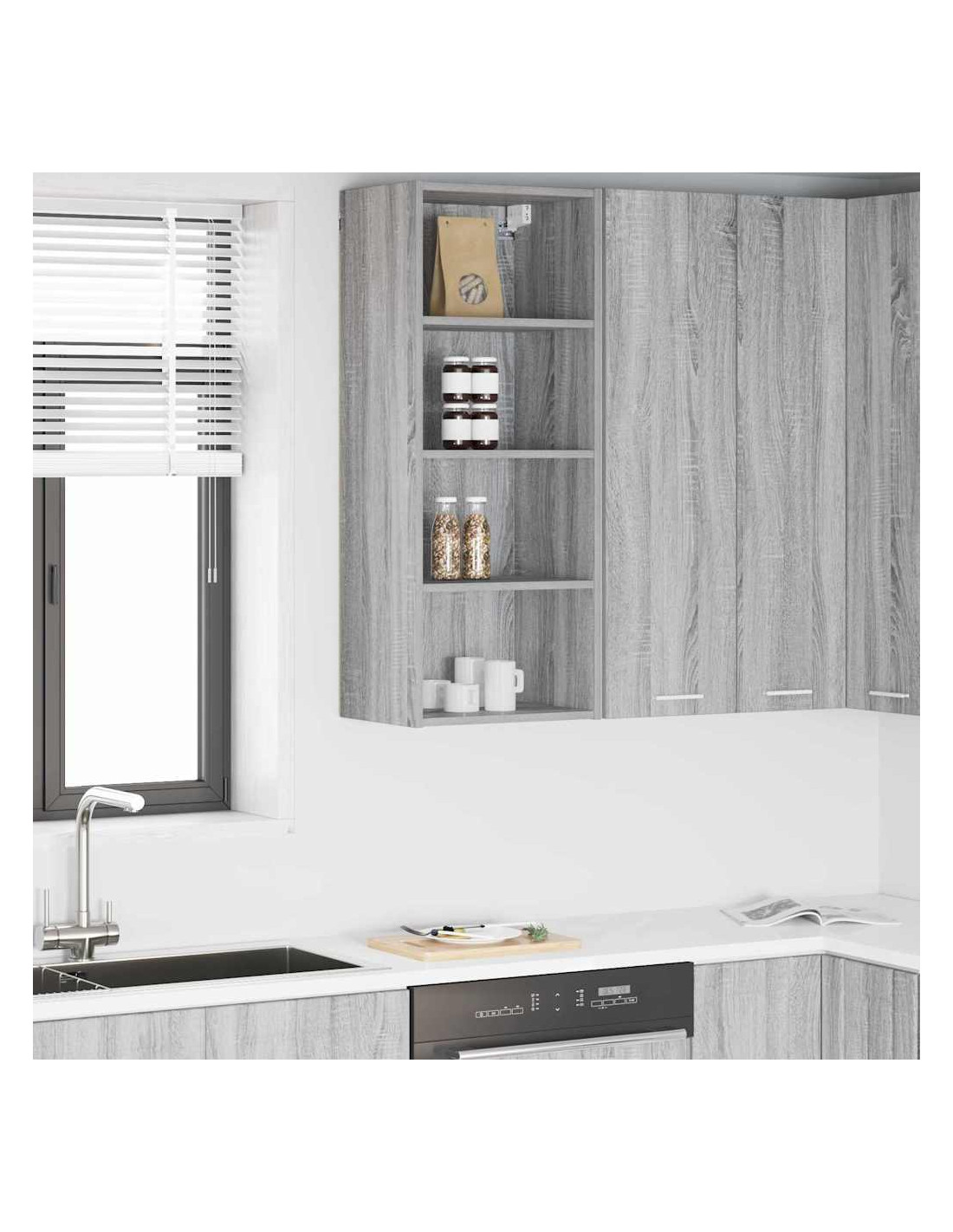 - Componenti inclusi: Con pannelli posteriori rifiniti e ripiani solidi, questo armadietto a parete è progettato per ottimizzare l'organizzazione e lo stoccaggio in cucina.