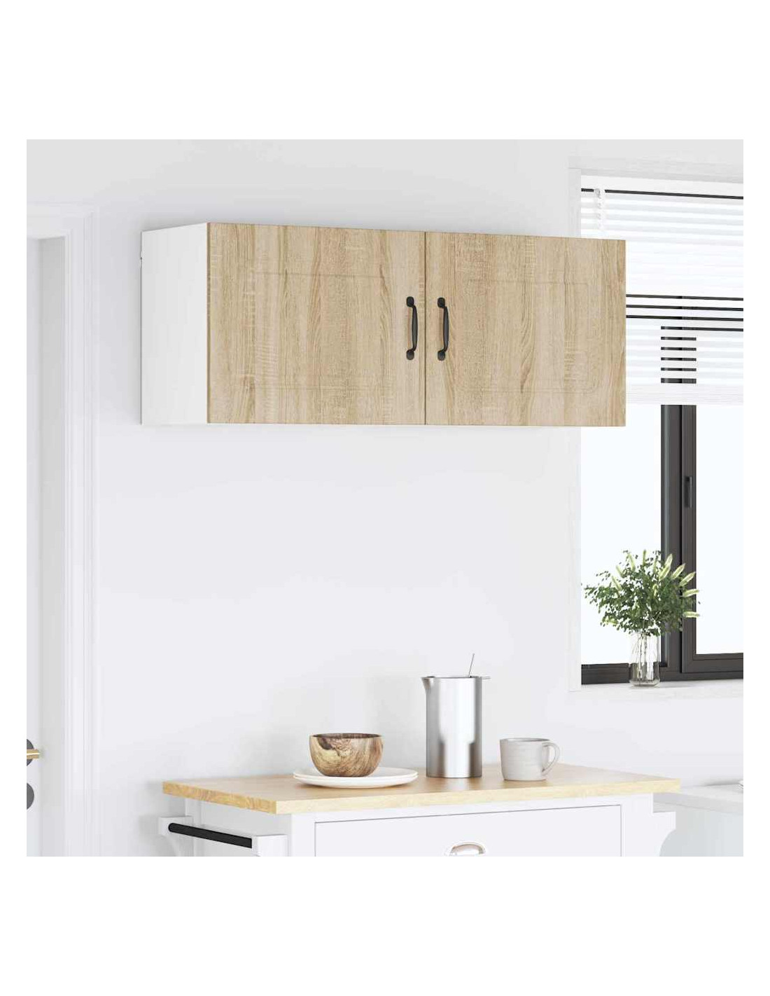 Questo armadietto da parete per la cucina porta un tocco moderno al tuo spazio, offrendo molte soluzioni di stoccaggio per mantenere tutto in ordine. Le linee pulite e la cornice bianca danno un senso di minimalismo e funzionalità, adatto a vari stili di cucina. Perfetto per riporre stoviglie, ingredienti e altro, questo armadietto unisce praticità e design elegante, rendendo il tuo ambiente culinario ancora migliore.