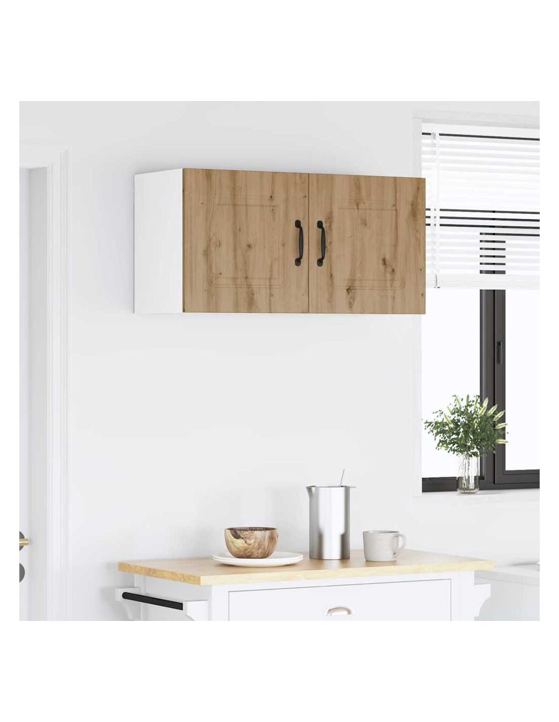 Questo armadietto da parete per la cucina porta un tocco moderno al tuo spazio, offrendo molte soluzioni di stoccaggio per mantenere tutto in ordine. Le linee pulite e la cornice bianca danno un senso di minimalismo e funzionalità, adatto a vari stili di cucina. Perfetto per riporre stoviglie, ingredienti e altro, questo armadietto unisce praticità e design elegante, rendendo il tuo ambiente culinario ancora migliore.