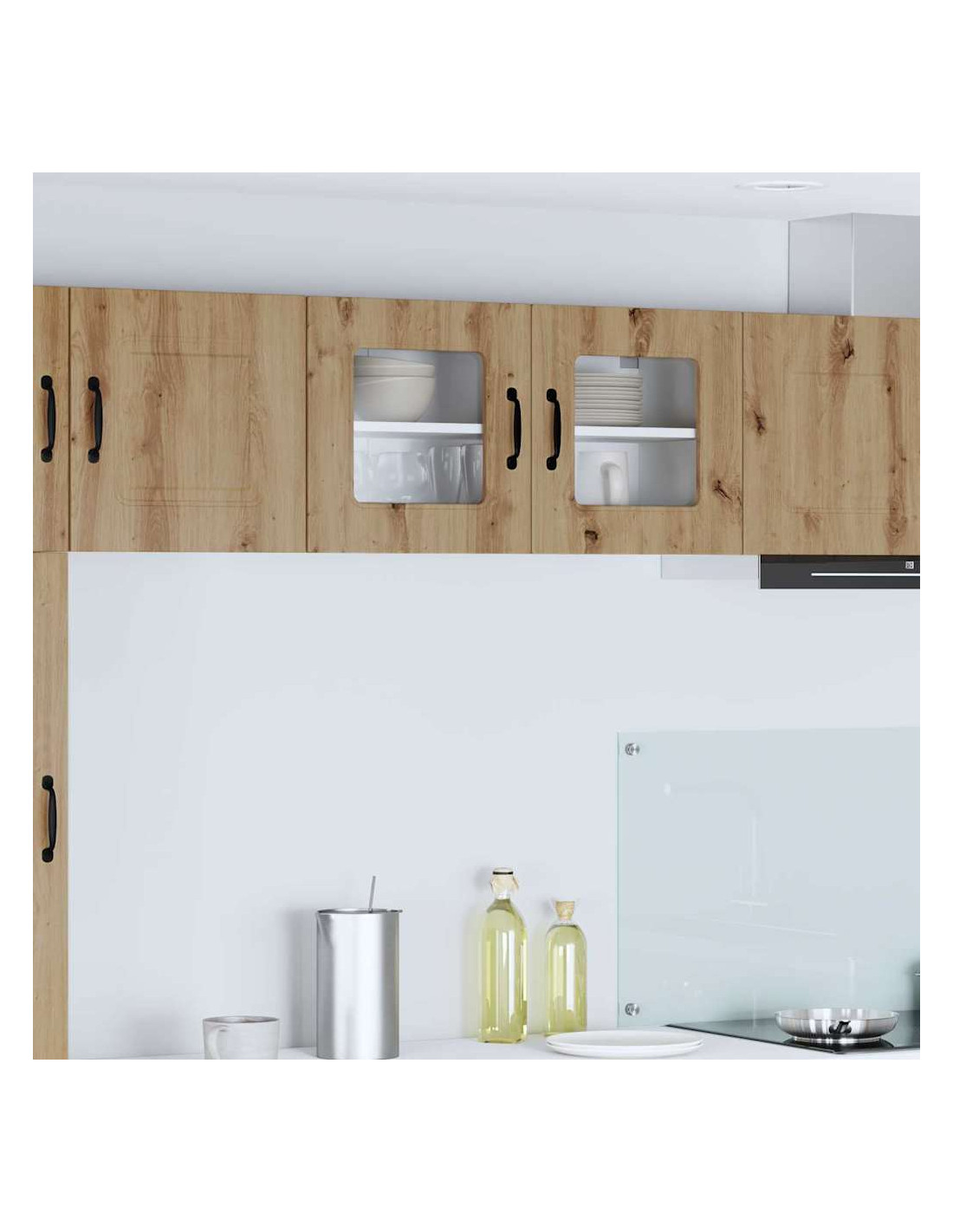 Questo armadietto da parete per la cucina porta un tocco moderno al tuo spazio, offrendo molte soluzioni di stoccaggio per mantenere tutto in ordine. Le linee pulite e la cornice bianca danno un senso di minimalismo e funzionalità, adatto a vari stili di cucina. Perfetto per riporre stoviglie, ingredienti e altro, questo armadietto unisce praticità e design elegante, rendendo il tuo ambiente culinario ancora migliore.