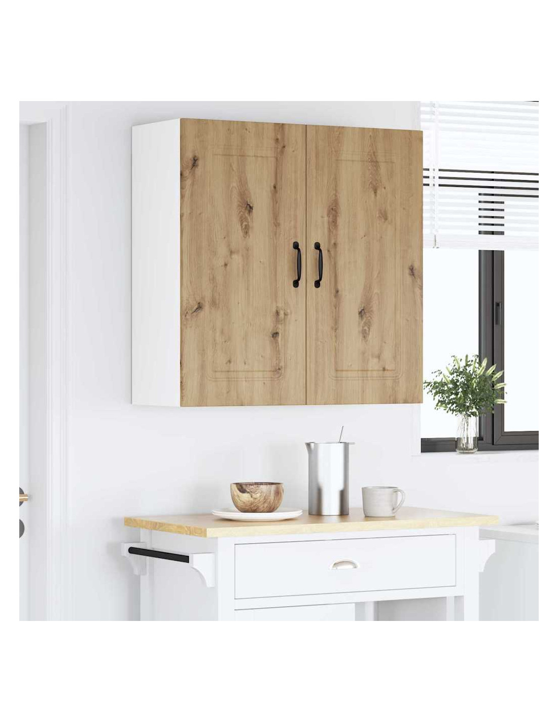 Questo armadietto da parete per la cucina porta un tocco moderno al tuo spazio, offrendo molte soluzioni di stoccaggio per mantenere tutto in ordine. Le linee pulite e la cornice bianca danno un senso di minimalismo e funzionalità, adatto a vari stili di cucina. Perfetto per riporre stoviglie, ingredienti e altro, questo armadietto unisce praticità e design elegante, rendendo il tuo ambiente culinario ancora migliore.