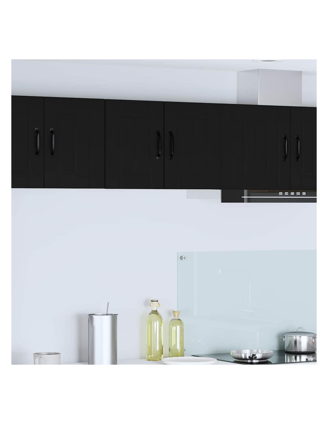 - Porte a cerniera:Le porte a cerniera rendono l'apertura fluida. Sono eleganti e si integrano perfettamente nelle cucine moderne. Le maniglie a barra nera offrono un bel contrasto e sono pratiche.