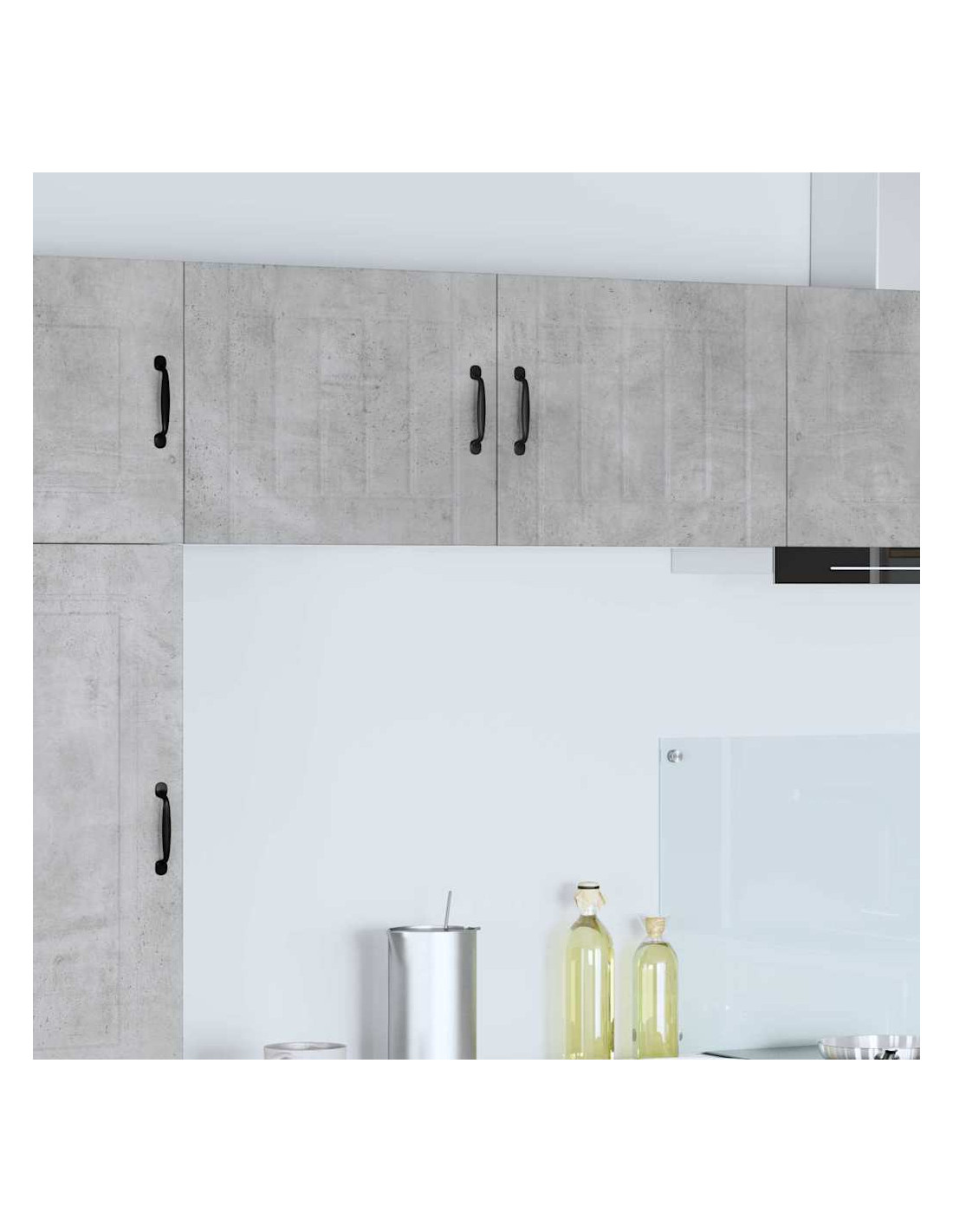 - Porte a cerniera:Le porte a cerniera rendono l'apertura fluida. Sono eleganti e si integrano perfettamente nelle cucine moderne. Le maniglie a barra nera offrono un bel contrasto e sono pratiche.