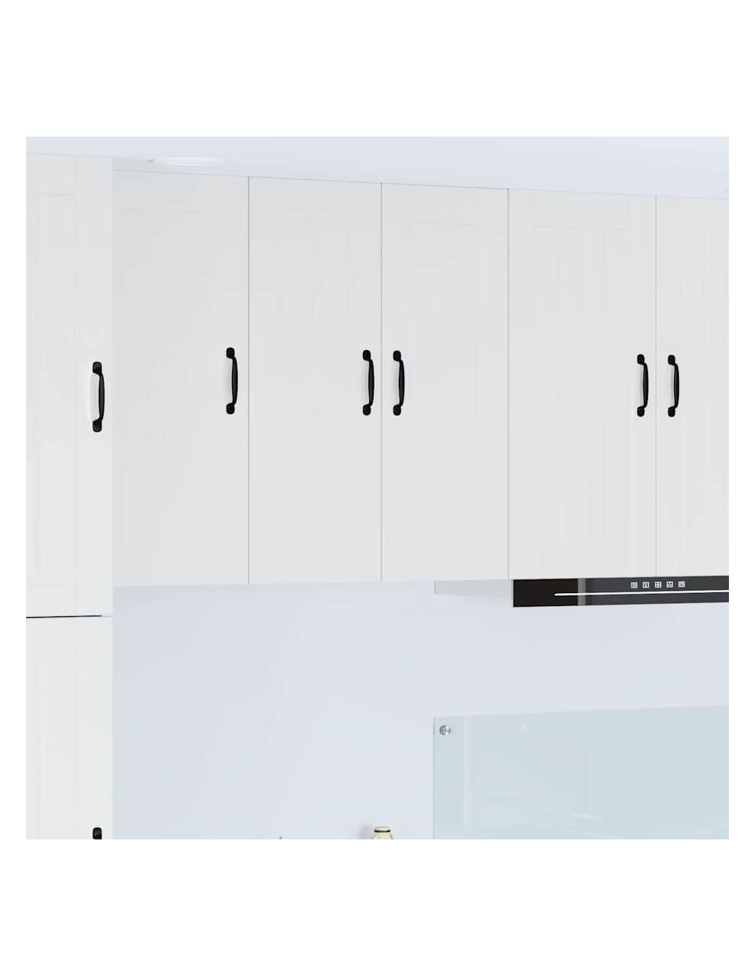 - Porte a cerniera:Le porte a cerniera rendono l'apertura fluida. Sono eleganti e si integrano perfettamente nelle cucine moderne. Le maniglie a barra nera offrono un bel contrasto e sono pratiche.