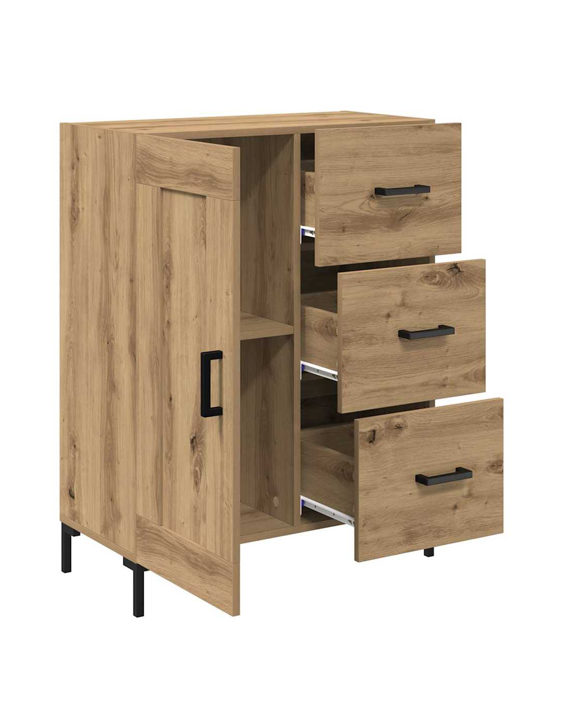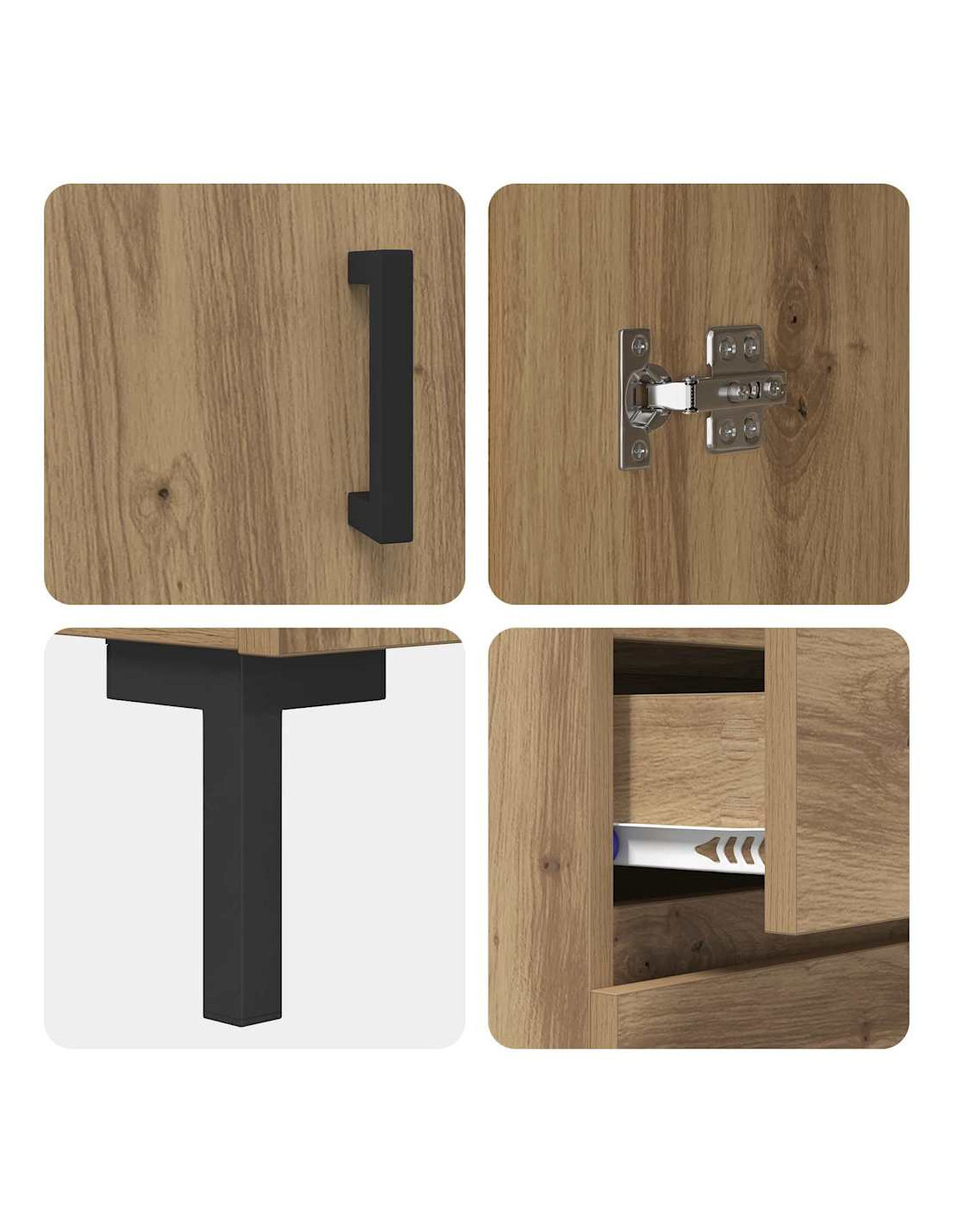 - Costruzione in Legno Ingegnerizzato Questa credenza è realizzata in legno ingegnerizzato, conosciuto per durare e per la sua facilità di pulizia. Perfetta per un uso intenso, rimane sempre in ottime condizioni e si mantiene facilmente con un semplice panno umido, assicurando un aspetto fresco nel tempo.