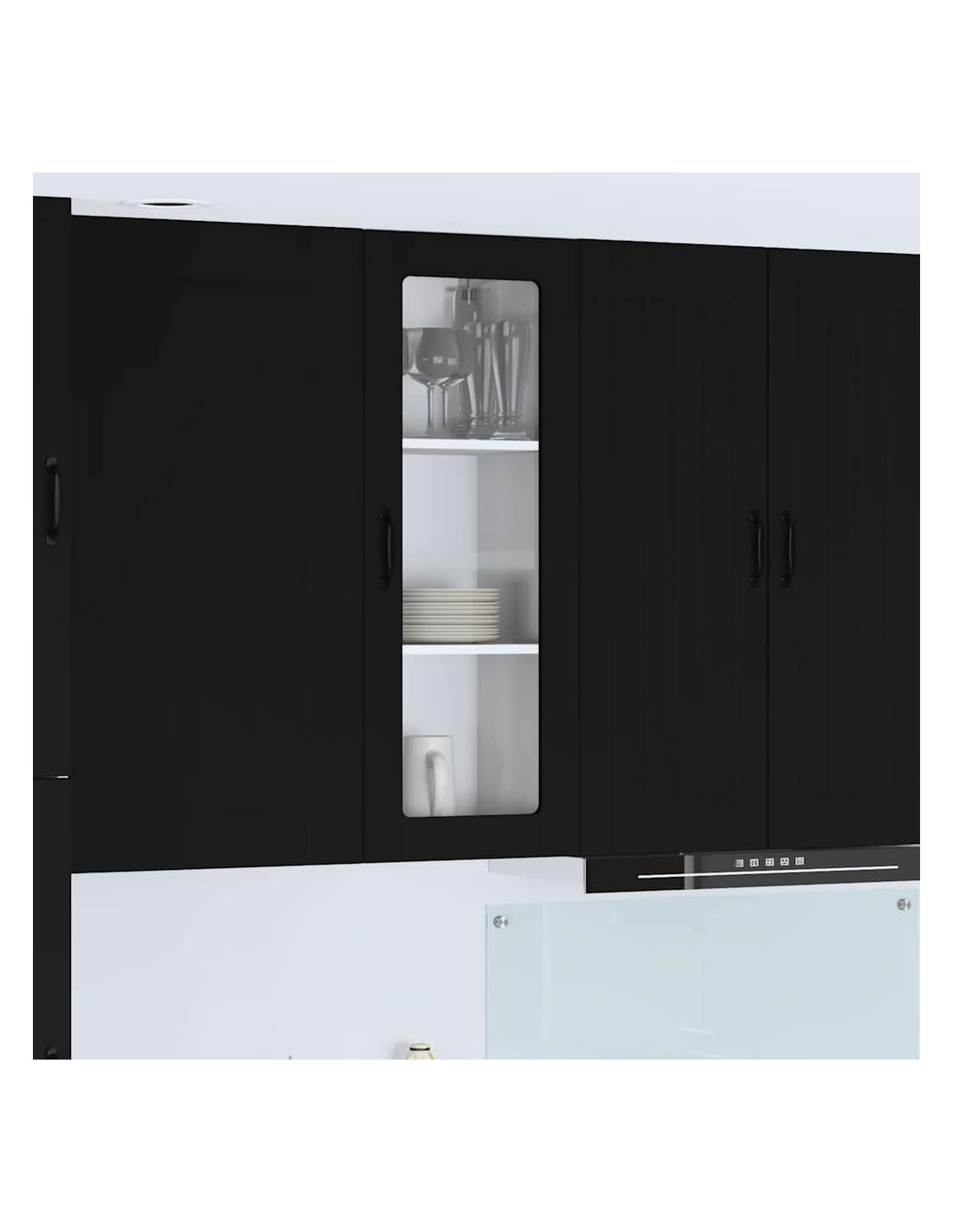 - Porte a cerniera:Le porte a cerniera rendono l'apertura fluida. Sono eleganti e si integrano perfettamente nelle cucine moderne. Le maniglie a barra nera offrono un bel contrasto e sono pratiche.