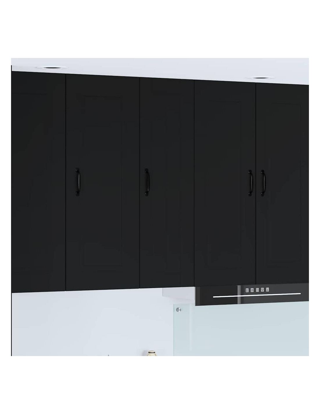 - Porte a cerniera:Le porte a cerniera rendono l'apertura fluida. Sono eleganti e si integrano perfettamente nelle cucine moderne. Le maniglie a barra nera offrono un bel contrasto e sono pratiche.