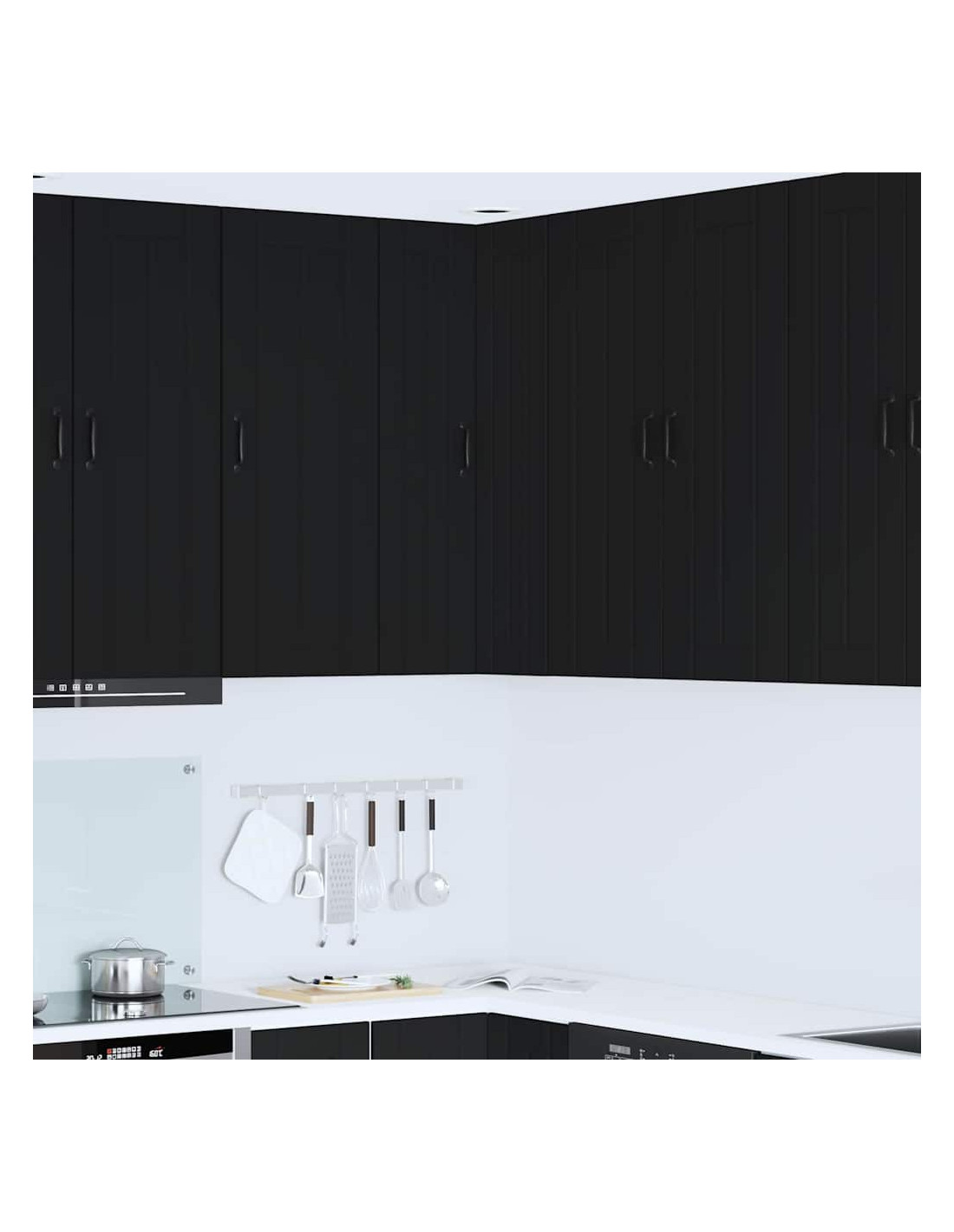 - Porte a cerniera:Le porte a cerniera rendono l'apertura fluida. Sono eleganti e si integrano perfettamente nelle cucine moderne. Le maniglie a barra nera offrono un bel contrasto e sono pratiche.