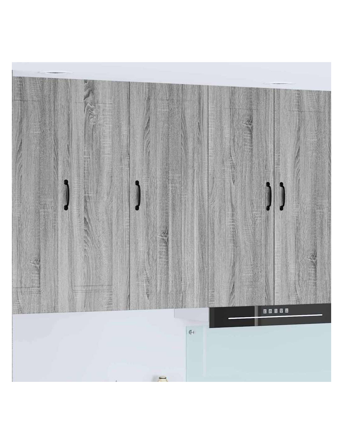 - Porte a cerniera:Le porte a cerniera rendono l'apertura fluida. Sono eleganti e si integrano perfettamente nelle cucine moderne. Le maniglie a barra nera offrono un bel contrasto e sono pratiche.
