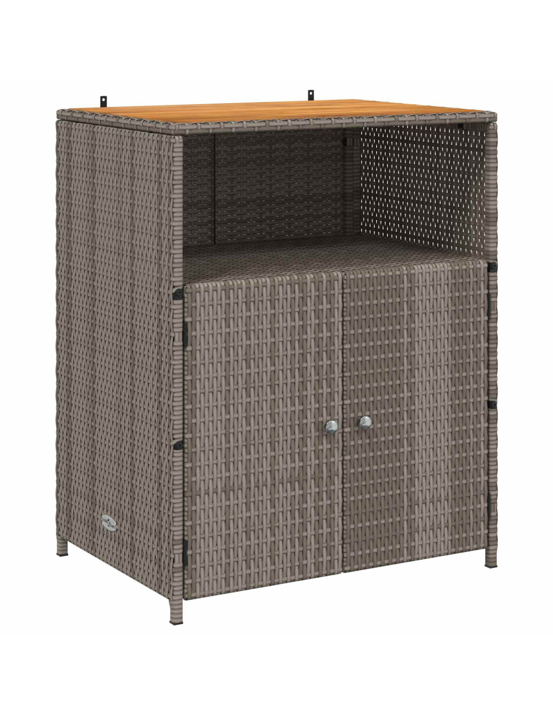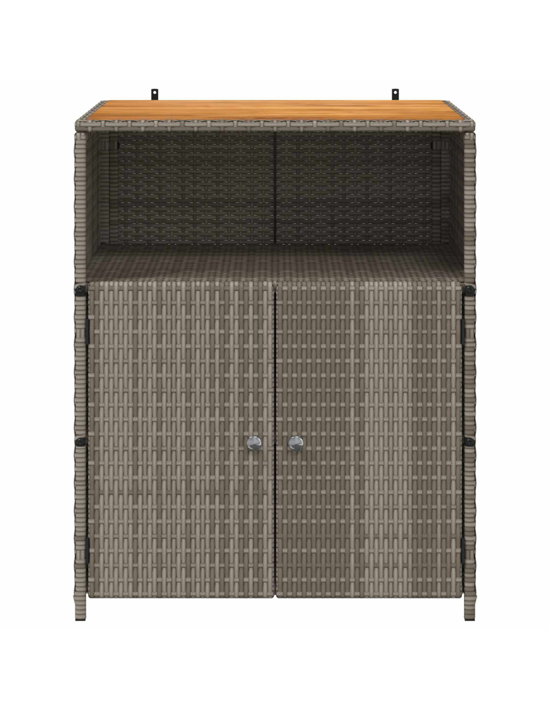 - Elementi in polyrattan: Le parti in polyrattan per ripiani e porte creano un mix di texture e praticità, perfetto per l'uso all'aperto.