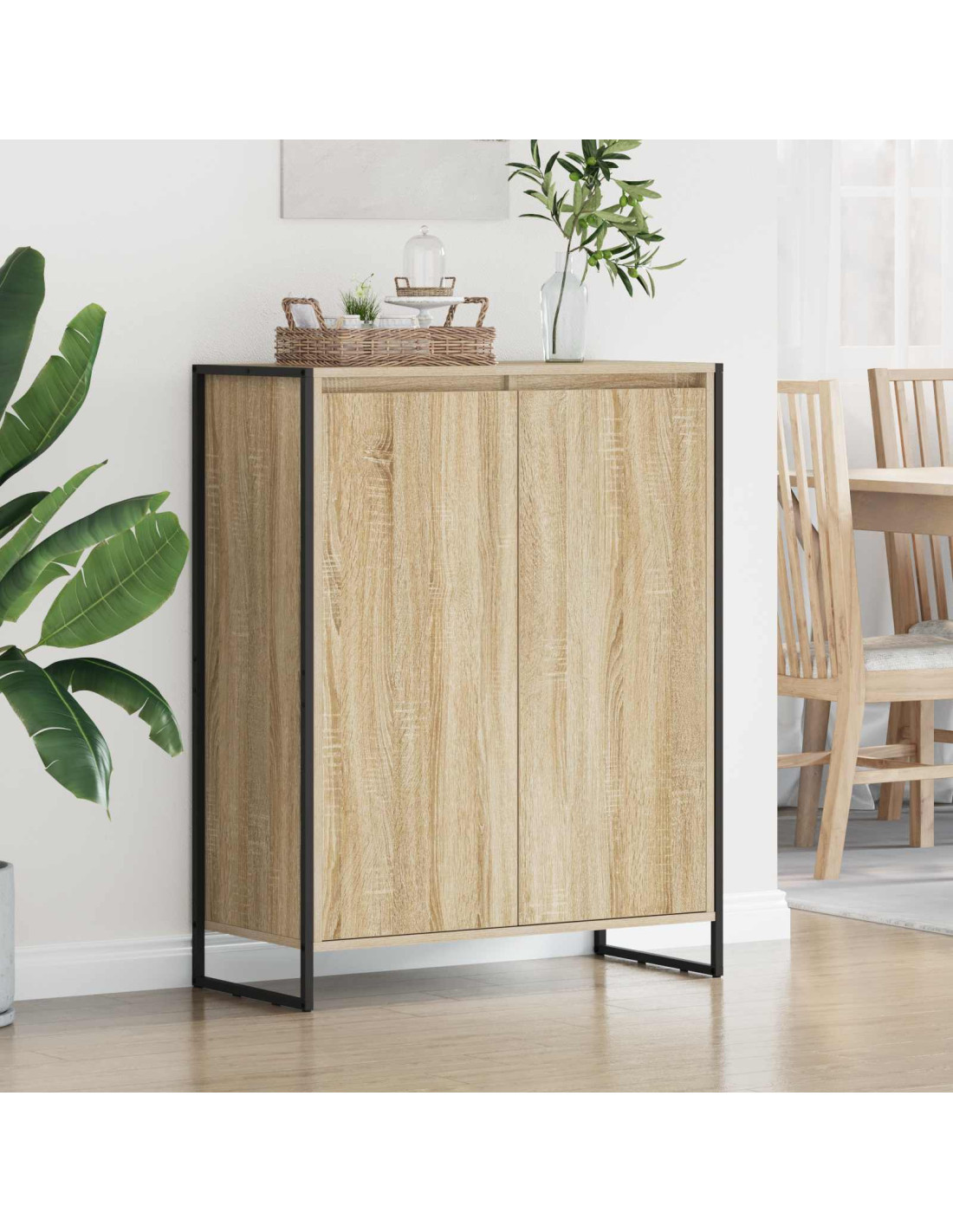 - Struttura in legno ingegnerizzato: Fatto con legno ingegnerizzato di alta qualità, questo armadietto è resistente e ha un bel design che si adatta a qualsiasi interno. La superficie è pensata per resistere a graffi e usura quotidiana, perfetta per famiglie attive. Non solo è bello, ma assicura anche che l'armadietto duri nel tempo.