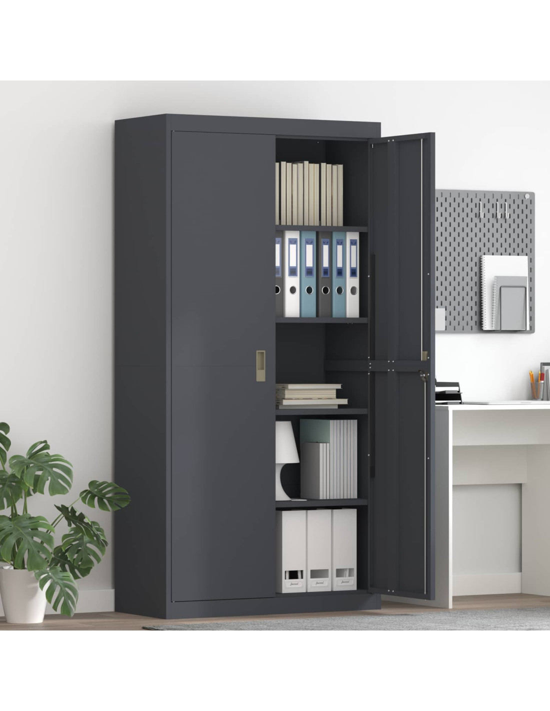- Design di Stoccaggio Efficiente Progettato per ottimizzare l'uso dello spazio interno, l'armadio accoglie con facilità vari materiali utili per l'ufficio. La sua configurazione assicura ampio spazio per documenti e cancelleria, rendendolo un elemento fondamentale per l'organizzazione.