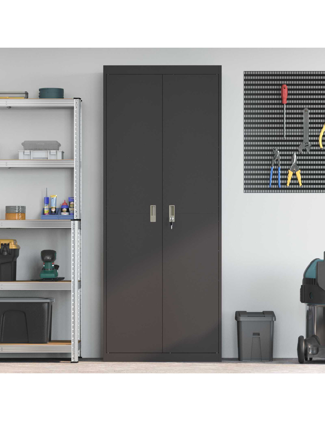 Questo armadio di stoccaggio è la soluzione moderna perfetta per organizzare il tuo ufficio con stile. Con un tocco di design industriale, combina funzionalità e bellezza, ideale per chi cerca robusti sistemi di stoccaggio. La struttura in acciaio, completata da una verniciatura a polvere, non solo è bella, ma la rende anche resistente nel tempo.