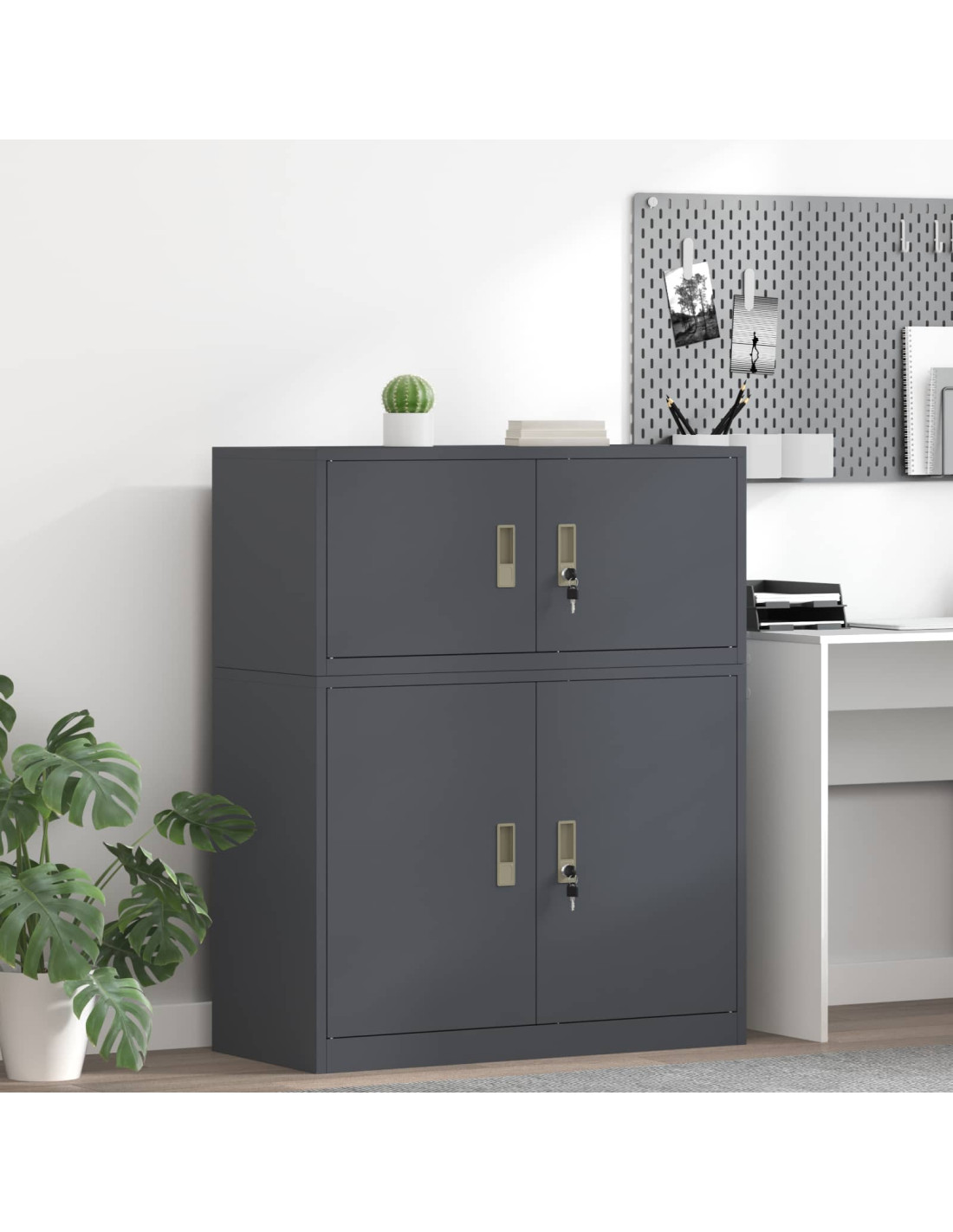 - Costruzione in Acciaio Solido Questo armadio è fatto di acciaio robusto, garantendo durata e stabilità. Resistente all'usura quotidiana negli uffici, il suo design moderno si adatta perfettamente a qualsiasi ambiente di lavoro.