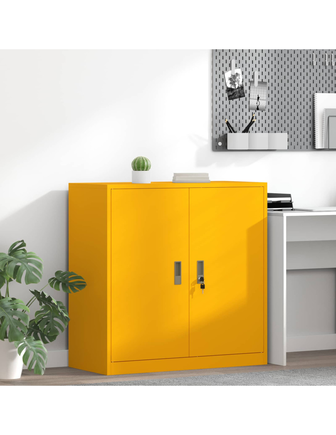 - Costruzione in Acciaio Solido Questo armadio è fatto di acciaio robusto, garantendo durata e stabilità. Resistente all'usura quotidiana negli uffici, il suo design moderno si adatta perfettamente a qualsiasi ambiente di lavoro.