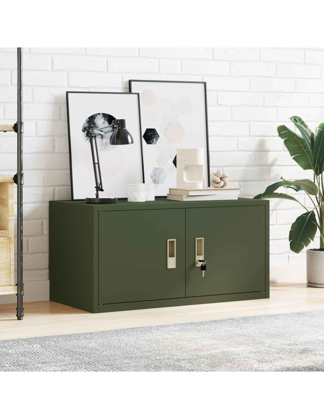 Questo armadio di stoccaggio è la soluzione moderna perfetta per organizzare il tuo ufficio con stile. Con un tocco di design industriale, combina funzionalità e bellezza, ideale per chi cerca robusti sistemi di stoccaggio. La struttura in acciaio, completata da una verniciatura a polvere, non solo è bella, ma la rende anche resistente nel tempo.