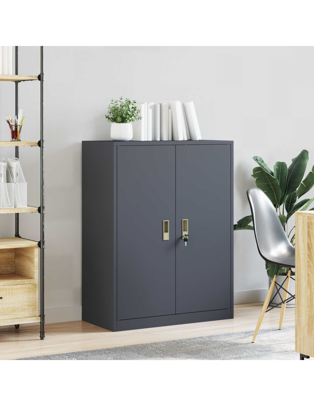 - Costruzione in Acciaio Solido Questo armadio è fatto di acciaio robusto, garantendo durata e stabilità. Resistente all'usura quotidiana negli uffici, il suo design moderno si adatta perfettamente a qualsiasi ambiente di lavoro.