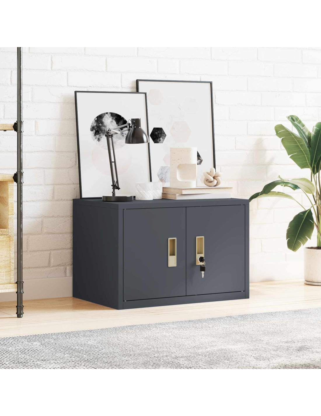 Questo armadio di stoccaggio è la soluzione moderna perfetta per organizzare il tuo ufficio con stile. Con un tocco di design industriale, combina funzionalità e bellezza, ideale per chi cerca robusti sistemi di stoccaggio. La struttura in acciaio, completata da una verniciatura a polvere, non solo è bella, ma la rende anche resistente nel tempo.
