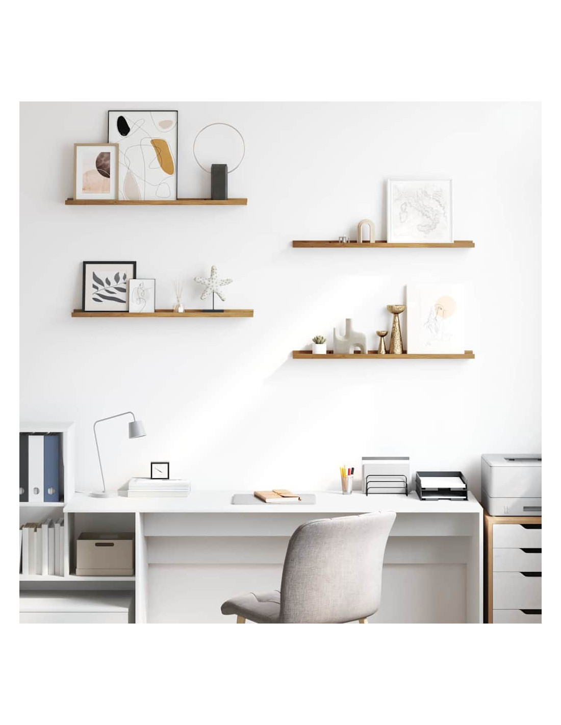 Questa mensola a parete in legno unisce funzionalità moderna e design elegante, perfetta per casa e ufficio. Ottima per sfruttare al massimo lo spazio sulle pareti, aggiungendo un tocco minimalista, si integra benissimo in vari ambienti come soggiorni, camere da letto o uffici. La superficie liscia e la forma rettangolare le danno un aspetto sofisticato, mentre è robusta e durevole grazie al legno ingegnerizzato. La sua natura modulare permette configurazioni flessibili, rendendola versatile per vari bisogni di stoccaggio e esposizione.